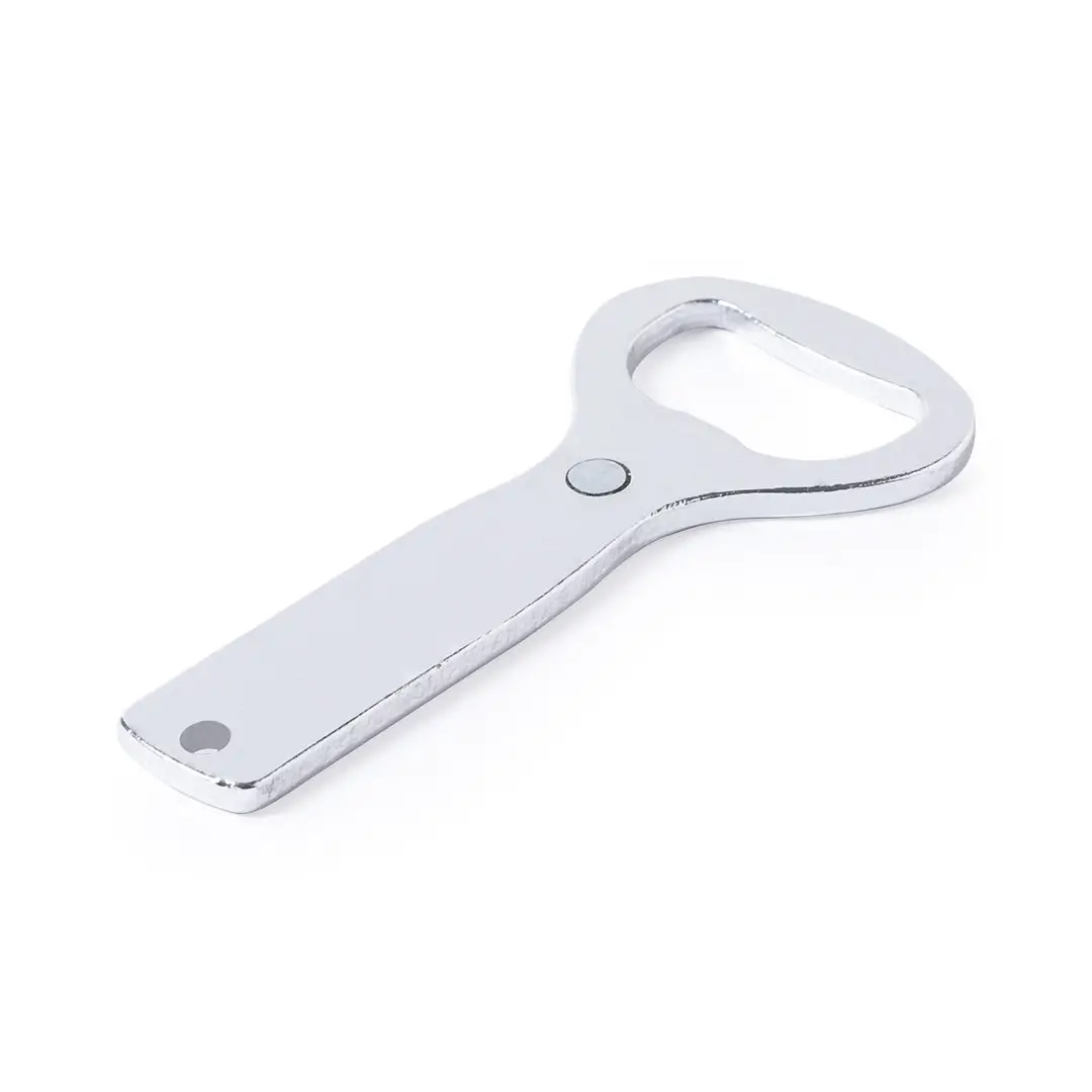 Sencillo y elegante abridor fabricado en aluminio y con imán en el mango. Presentación individual en bolsa autocierre.