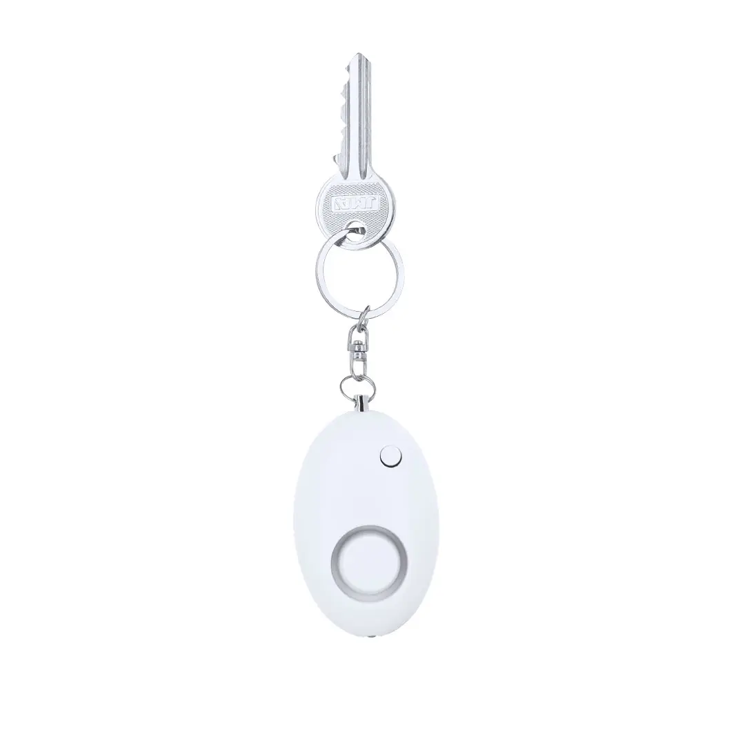 Alarma Personal con linterna LED, equipada con un potente timbre de volumen para alertar de emergencias. Con sencilla activación mediante un sistema de tirado de la anilla que activa la alarma de inmediato. Incorpora una linterna LED, ideal para proporcionar iluminación en condiciones de baja visibilidad. Incluye un mosquetón y una anilla metálica para facilitar su sujeción a bolsos, mochilas o llaveros, etc. Funcionamiento a pilas de botón (incluidas).