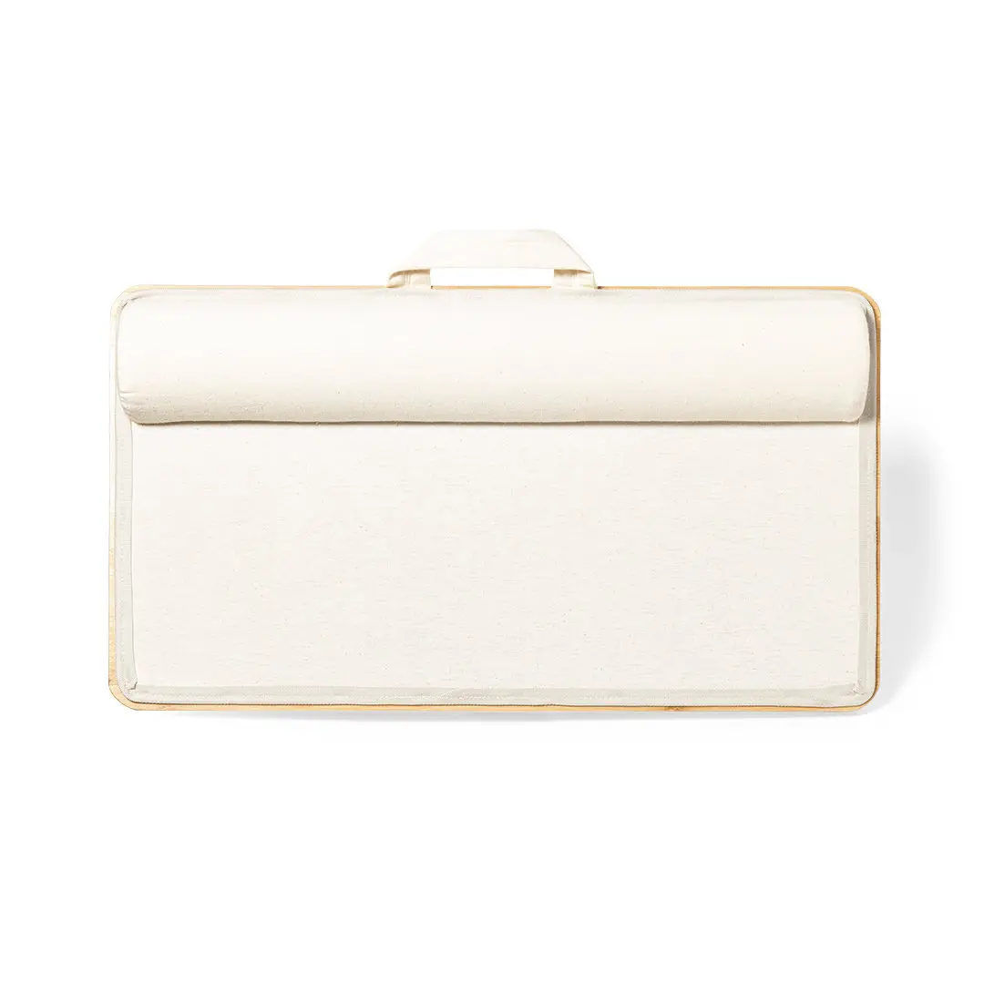 Alfombrilla organizador multifuncional de línea nature. Está fabricada en bambú y corcho natural, ayudando a la sostenibilidad del planeta. Incluye soportes para ordenador portátil, tablets y demás dispositivos móviles. Con alfombrilla para ratón integrada y de suave tacto. Además, incorpora acolchado para las rodillas, facilitando su uso durante largos periodos de manera confortable. Incluye práctica asa de transporte.