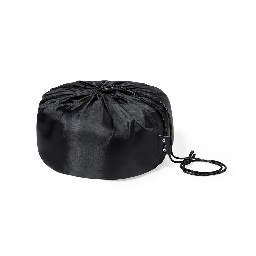 Almohadilla fabricada en suave tejido de RPET, con un esponjoso relleno adaptable. Con capucha para mayor calidez y equipada con accesorio de ajuste personalizado, asa de transporte y funda de almacenamiento. Incluye distintivo de RPET en etiqueta.El material RPET se elabora a partir de plástico reciclado, para así fomentar la reutilización de residuos plásticos y ayudar a la sostenibilidad del planeta.