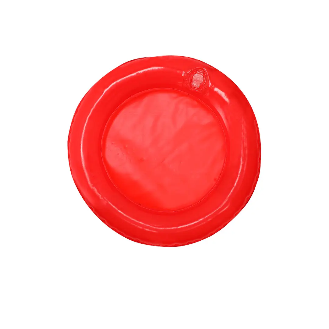 Original almohadilla para la cabeza con función de frisbee, de diseño redondo con aro hinchable fabricado en resistente PVC de color sólido y acabado brillo. Con plegado especial para fácil impresión.