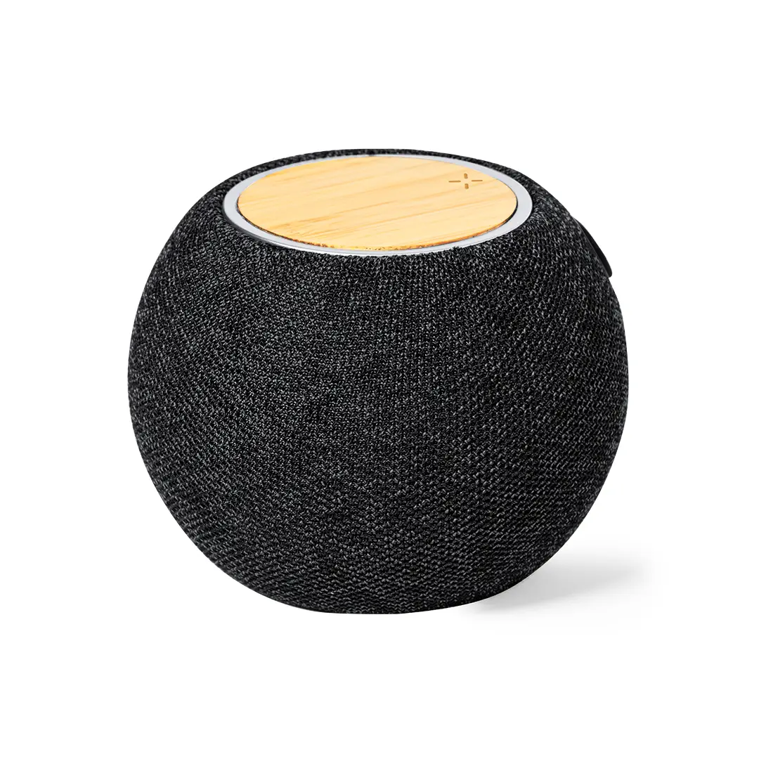 Altavoz multifunción con conexión Bluetooth. Con carga inalámbrica de 15W para dispositivos con tecnología Qi. Carcasa fabricada en bambú y poliéster RPET, 5W de potencia, batería de 1200 mAh y conexión Bluetooth 5.0. Incluye cable cargador Tipo C. Con distintivo RPET y presentado en caja individual de diseño kraft. Disponible manual de instrucciones en español e inglés.El material RPET se elabora a partir de plástico reciclado, para así fomentar la reutilización de residuos plásticos y ayudar a la sostenibilidad del planeta.
