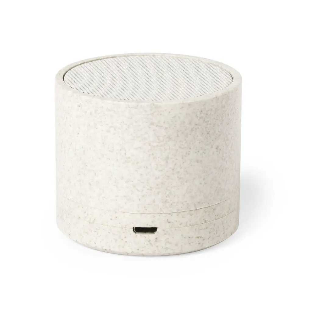 Compacto altavoz de línea nature y conexión Bluetooth 5.0. Carcasa en caña de trigo, para así fomentar la utilización de materias primas naturales y reducir las emisiones contaminantes. 3W de potencia, compatible con iOS y Android. Incluye cable de carga micro USB y soportes de goma antideslizantes en la base. Presentado en atractiva caja de diseño eco.
