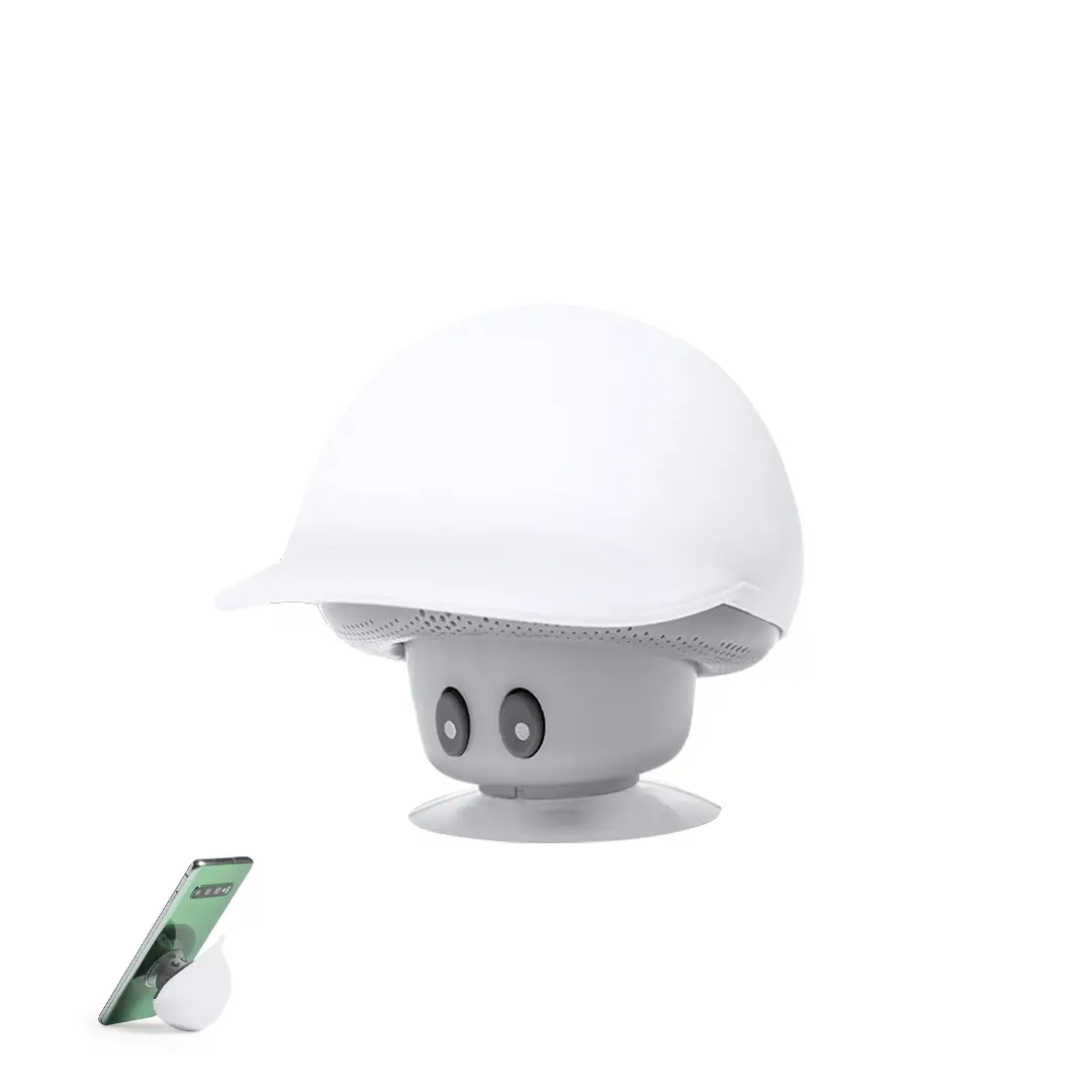 Altavoz de original diseño seta con gorra y función soporte para móvil. Conectividad Bluetooth 5.0, con 3W de potencia y función manos libres. Cuerpo con suave acabado de tacto goma y ventosa de fijación para función soporte. Cable Micro USB incluido y presentado en atractiva caja de diseño kraft. Disponible manual de instrucciones en español e inglés.