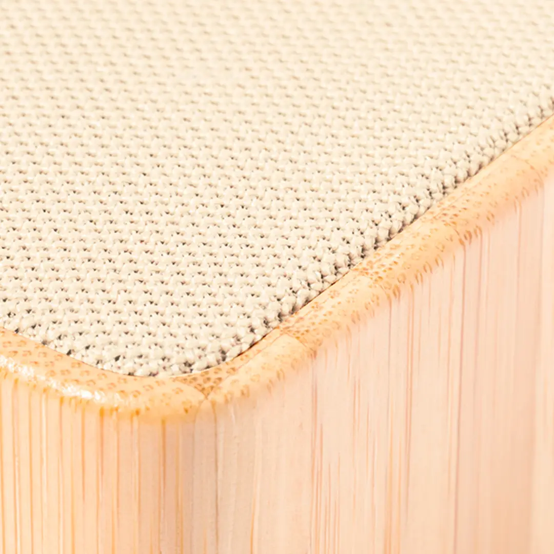 Altavoz inalámbrico con conexión Bluetooth y 3W potencia. Con carcasa en bambú natural en combinación recubrimiento superior de algodón. De tamaño compacto y con práctica asa de transporte en algodón. Batería de litio de 300mAh, con cable de carga Tipo C incluido. Presentado en caja individual de diseño kraft. Disponible manual de instrucciones en español e inglés.Materiales como el bambú fomentan la utilización de materias primas naturales reduciendo las emisiones contaminantes. Proviene de una planta de gran resistencia, versatilidad de crecimiento y de regeneración rápida, siendo una excelente alternativa al uso de madera tradicional.