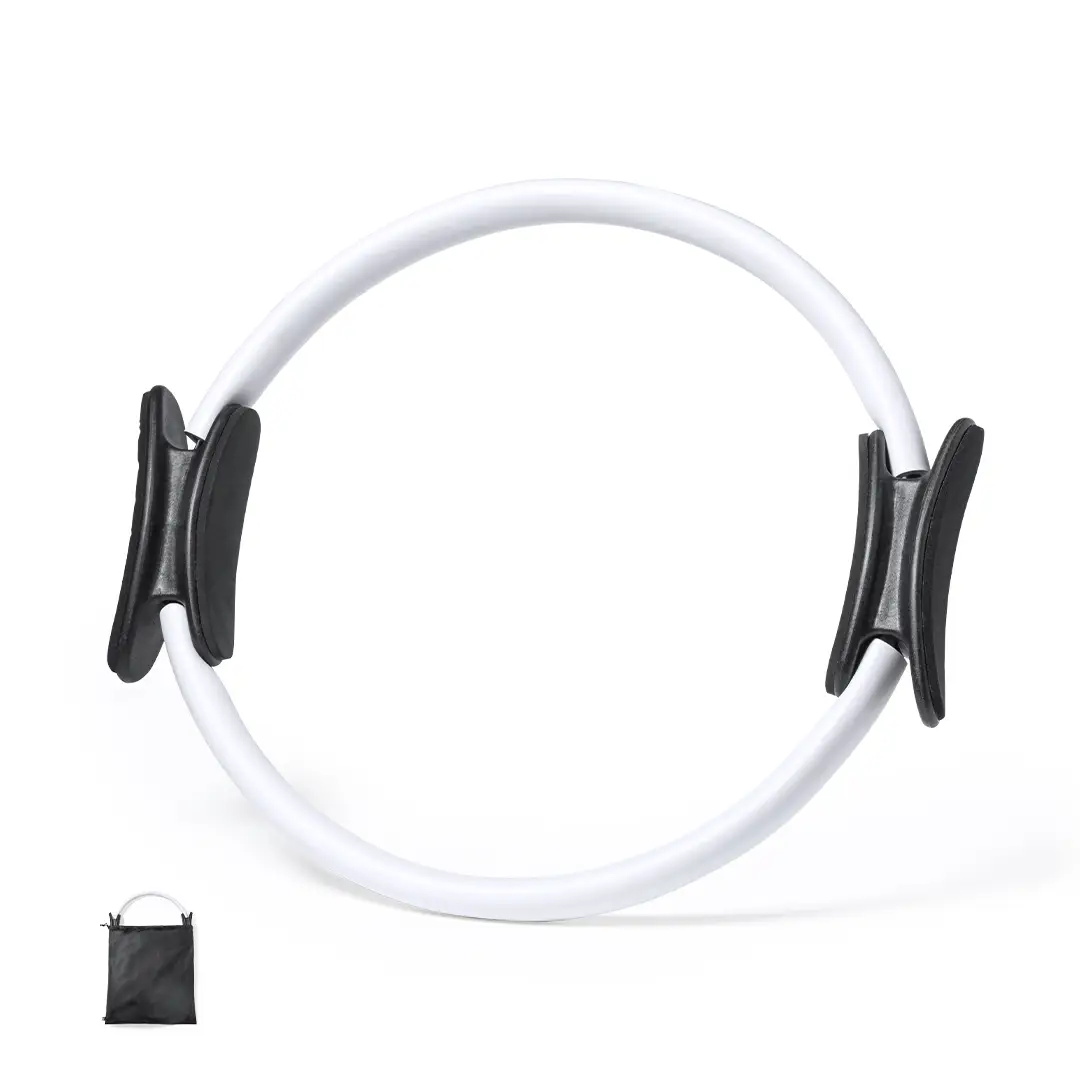 Aro para ejercicios fabricado en resistente fibra de vidrio con recubrimiento en EVA. Asas ergonómicas en ABS, con manual de instrucciones en español e inglés. Presentado en funda de non-woven RPET, con cierre de cordón y distintivo RPET en etiqueta. El material RPET se elabora a partir de plástico reciclado, para así fomentar la reutilización de residuos plásticos y ayudar a la sostenibilidad del planeta.