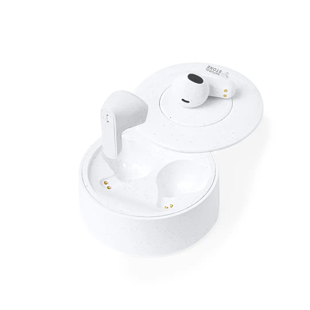 Auriculares intraurales fabricados con extractos de piedra natural en combinación con resistente ABS. Con conexión Bluetooth 5.3 y batería integrada de litio, con 30 mAh en cada auricular. De diseño ergonómico, con botón de control táctil en el auricular y función manos libres. Base de 250 mAh de capacidad e indicador LED de estado de carga, con cable de carga Tipo C incluido. Presentación en caja individual de diseño kraft, con manual de instrucciones en español e inglés.Fabricados con extractos de piedra natural, ayudando a la reducción del uso de plásticos, además de proporcionar un acabado suave y resistente.Las capacidades mostradas en todas nuestras baterías auxiliares externas son reales, incorporando todas ellas baterías de grado A y no recicladas, con una vida útil de al menos 500 ciclos de carga y según normativa CE.Además, están fabricados conforme a los estándares RoHS y en cumplimiento con los siguientes requisitos de seguridad:Sistema de protección contra sobrecarga del power bank.Sistema de protección contra descarga completa que proporciona una mayor durabilidad del power bank.Sistema de bloqueo para evitar cortocircuitos.Sistema de transferencia de carga constante, acorde con la capacidad del dispositivo de destino.