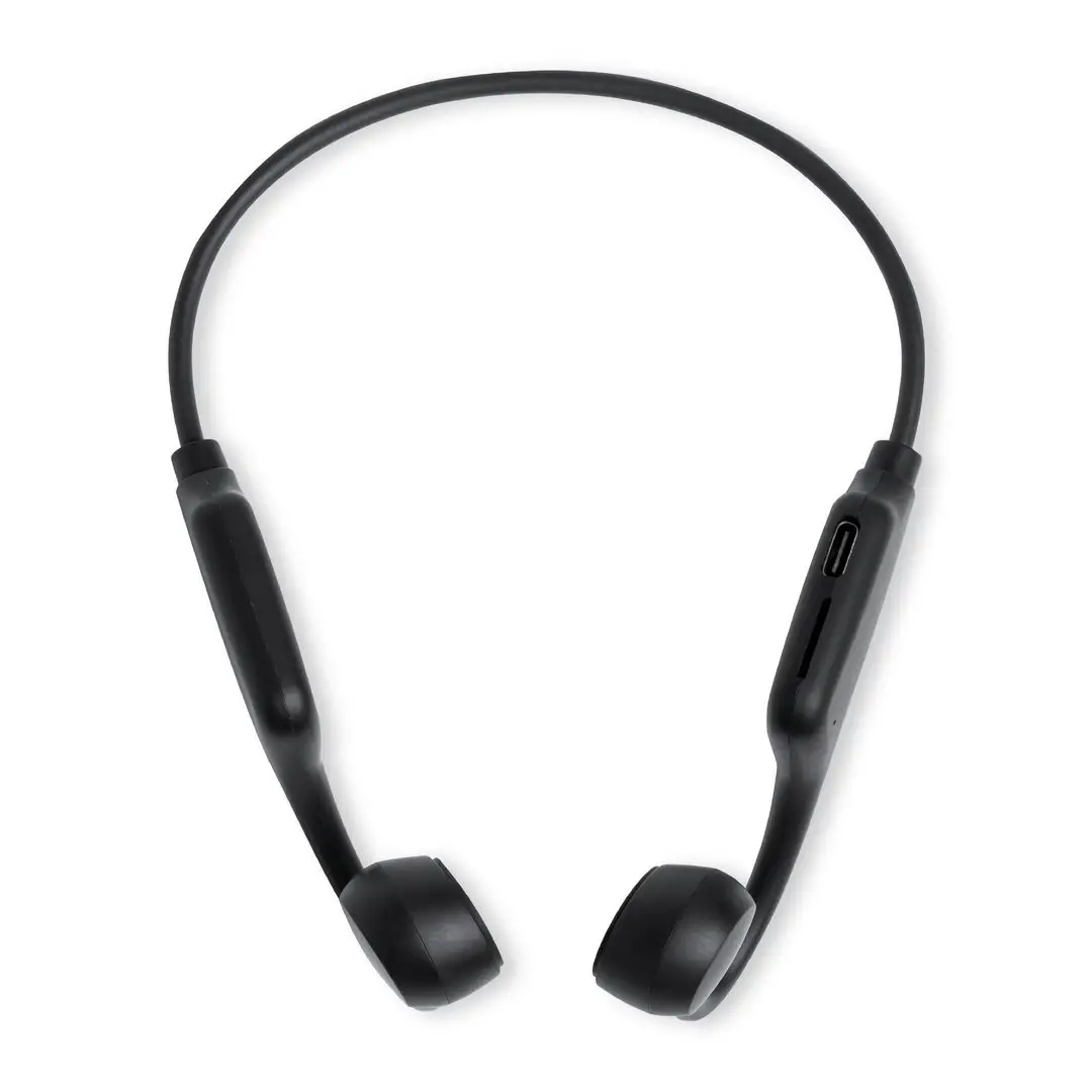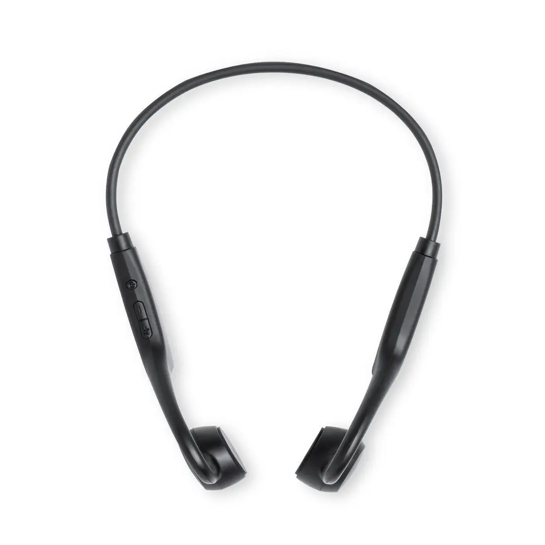 Auriculares supraurales Bluetooth. Con Tecnología de Conducción Ósea (Bone Conduction Technology), que generan una vibración captada por los huesos del oído interno. Mediante esta tecnología, el pabellón auditivo y los tímpanos del usuario quedan libres, percibiéndose tanto el contenido que se está reproduciendo a través de los auriculares como el resto de sonidos ambiente de alrededor.Conexión Bluetooth 5.3, con función manos libres, ranura para tarjetas micro SD y batería de 250 mAh integrada. De diseño ergonómico, incluyen botones de control integrados, luz LED de estado de carga y cable de carga Tipo C. Presentados en caja individual de diseño kraft, con manual de instrucciones en español e inglés.