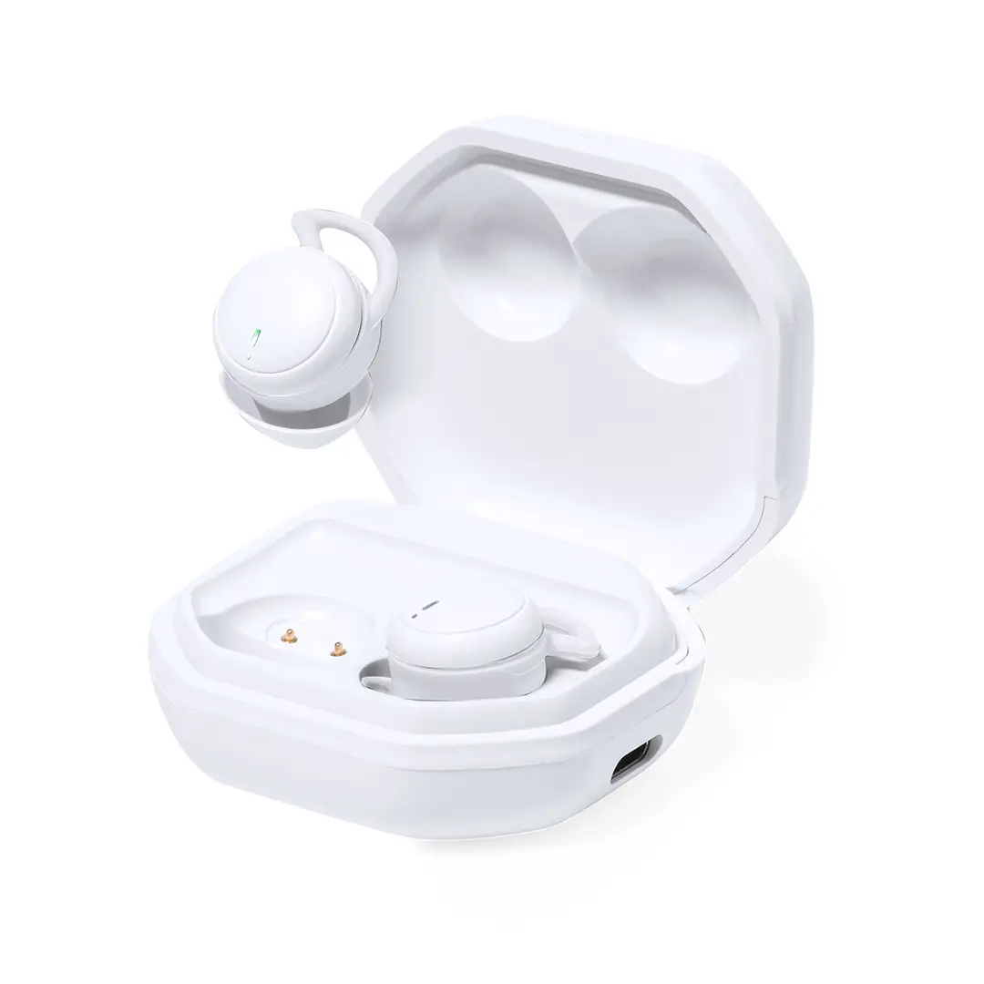 Auriculares intraurales en elegante acabado blanco y conexión Bluetooth 5.0. De diseño ergonómico y compacto, permitiendo apoyar la oreja o cubrirla sin ocasionar molestias. Incluyen botón de control táctil integrado en el auricular, con base de carga a juego. Función manos libres y recargables, con cable Tipo C incluido. Presentados en estuche individual de lujo con tapa de bisagra y con base de carga de 250mAh. Presentados en atractiva caja de diseño kraft, con manual de instrucciones en español e inglés.Fabricados conforme a los estándares RoHS y en cumplimiento con los siguientes requisitos de seguridad:Sistema de protección contra sobrecalentamiento.Sistema de protección contra sobrecarga.Sistema de bloqueo para evitar cortocircuitos.