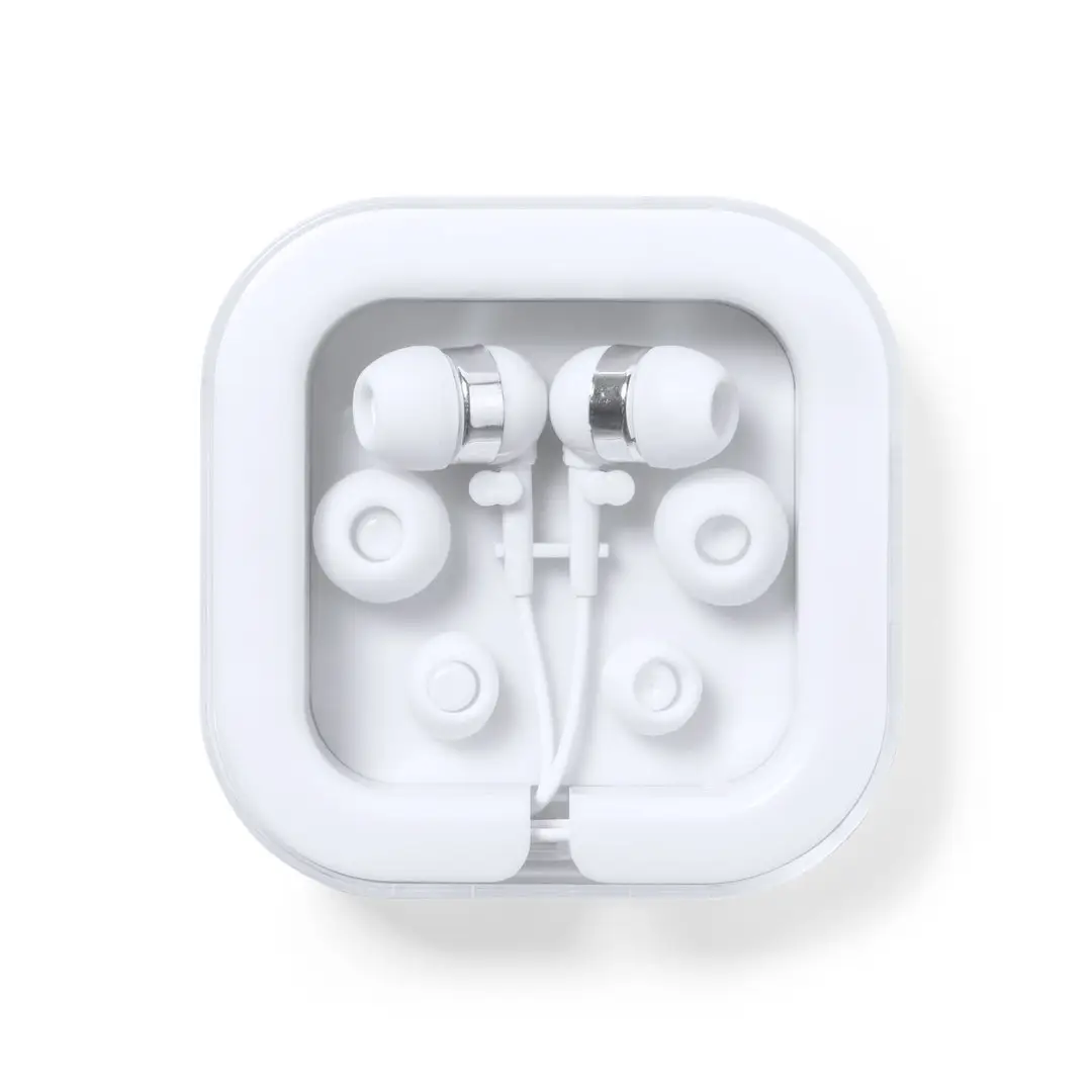 Prácticos y confortables auriculares intraurales con conexión Tipo C. En acabado blanco y con detalles en cromado, incluidos 3 pares de almohadillas para adaptarse a todos los oídos. Presentados en práctico estuche a juego con enrollacables y tapa transparente.
