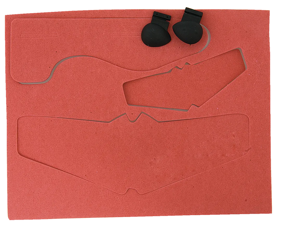 Avioneta desmontable con cuerpo en suave EVA de vivos colores y elástico de lanzamiento. Presentada en pastilla plana para fácil marcaje.