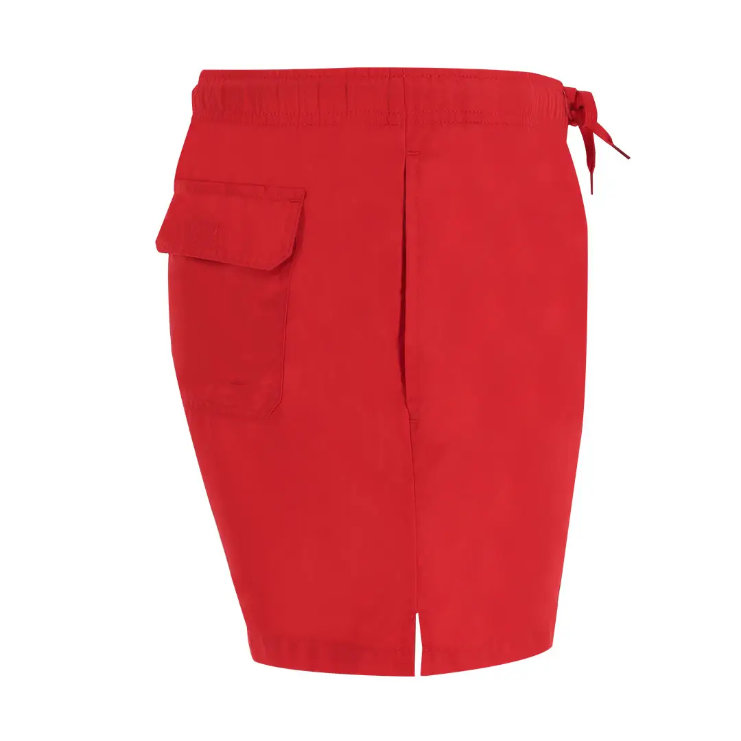 Bañador con una cinturilla elástica con costuras de seguridad y cordón ajustable a juego, equipado con aglets de seguridad. Incorpora dos bolsillos laterales y un bolsillo trasero con cierre de velcro y ojal de desagüe para la liberación de agua. Presenta apertura lateral para mayor libertad de movimiento y pespunte de carga con doble hilo al tono. Incluye slip interior con forro de tejido calado para mayor comodidad y soporte, así como un forro calado en los bolsillos para facilitar el drenaje del agua.