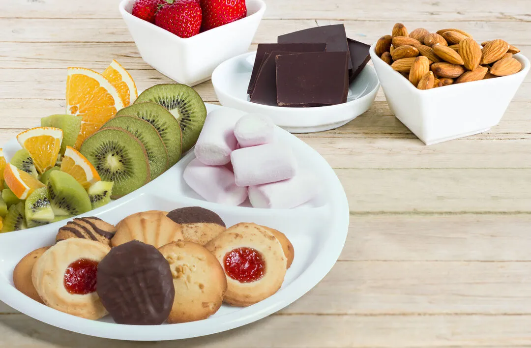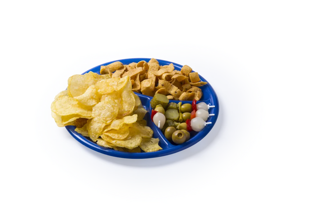 Bandeja de entremeses en resistente PP de variados colores. Con 3 compartimentos.