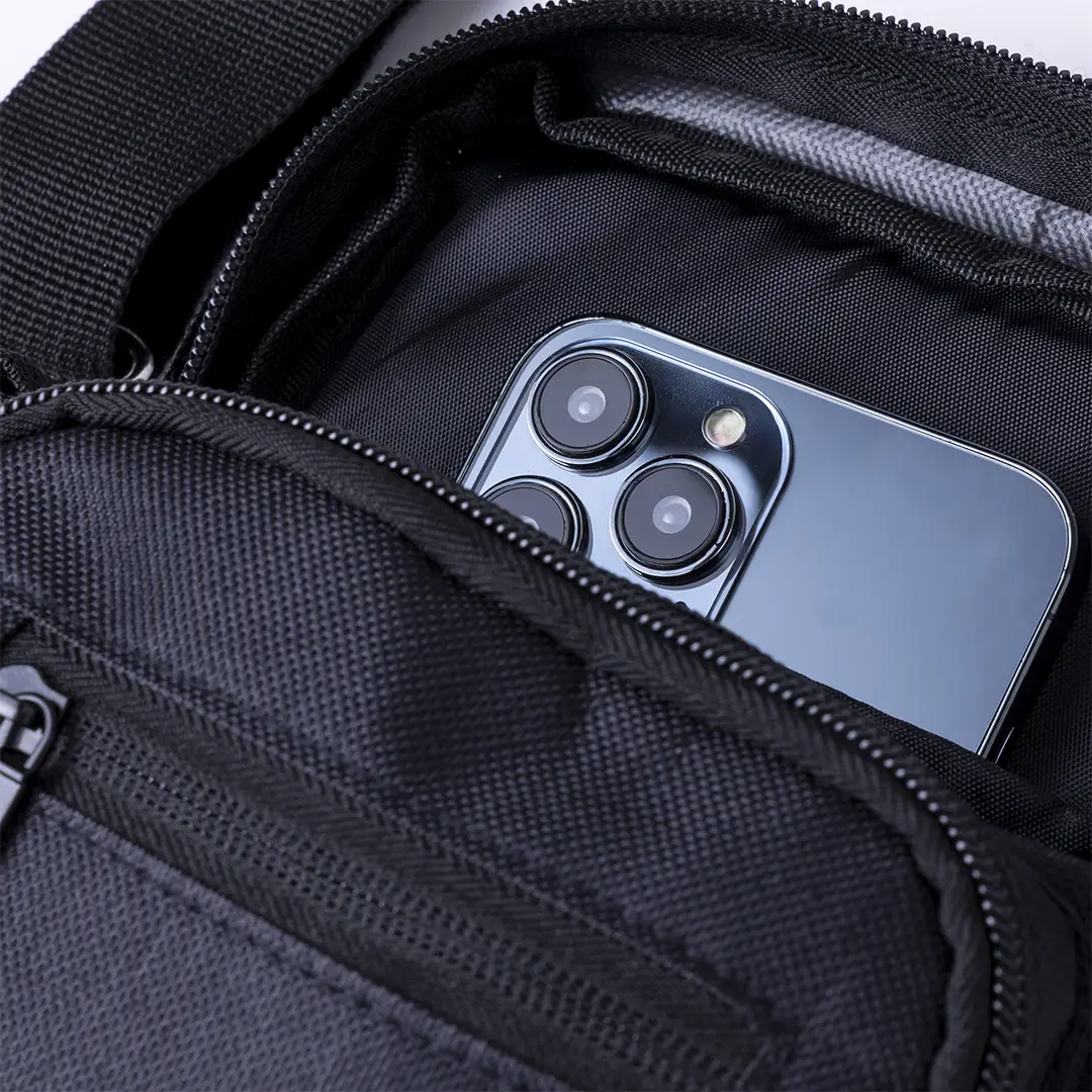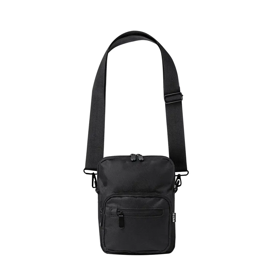Bandolera confeccionada en poliéster RPET 600D, cuenta con un bolsillo central de cremallera, y doble tirador, con dos compartimentos frontales de rápido acceso con cierre de cremallera. Equipada con una cinta ajustable para mayor comodidad y una etiqueta distintiva de RPET. Presentada individualmente en bolsa reciclada.El material RPET se elabora a partir de plástico reciclado, para así fomentar la reutilización de residuos plásticos y ayudar a la sostenibilidad del planeta.