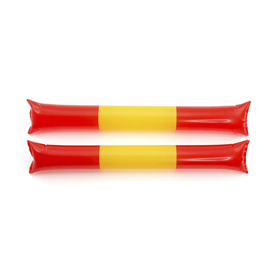Par de bastom sticks/aplaudidores en resistente y ruidoso material LDPE de diseño España. Reutilizables y con válvula de inflado incluida.