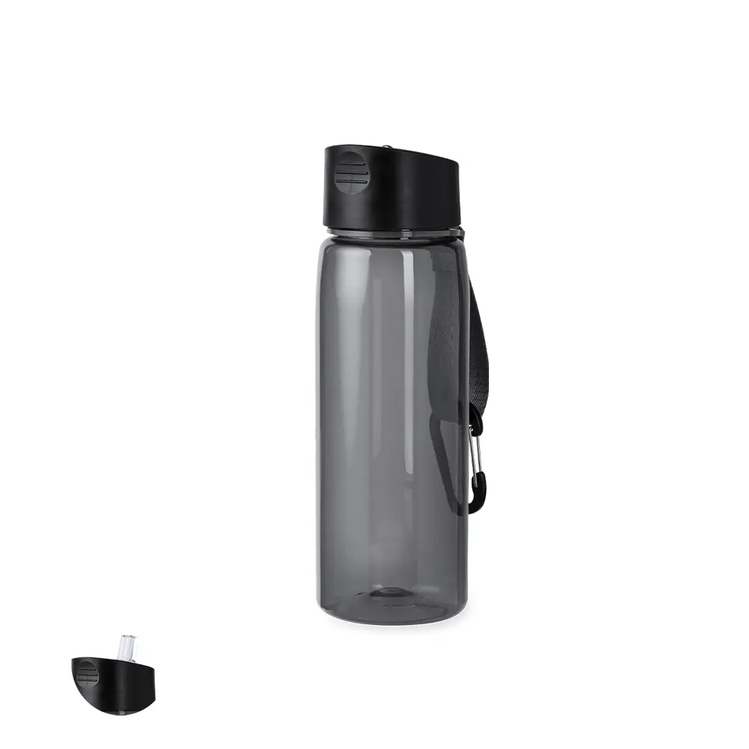 Bidón de 800 ml fabricado en resistente RPET y cuerpo de acabado transparente en variada gama de colores. Tapón negro de rosca, con dosificador y dosificador plegable. Con cinta de transporte a juego y mosquetón metálico para un cómodo transporte. Disponible en variada gama de colores.El material RPET se elabora a partir de plástico reciclado, para así fomentar la reutilización de residuos plásticos y ayudar a la sostenibilidad del planeta.