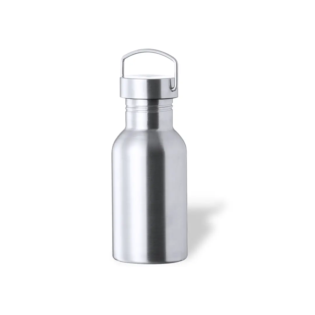 Bidón de 500 ml de capacidad, fabricado en acero inox de acabado brillo. Con original tapón a rosca en acero inox, a juego y con asa integrada. Libre de BPA y presentado en caja individual de diseño kraft.Disponible manual de instrucciones en español e inglés.