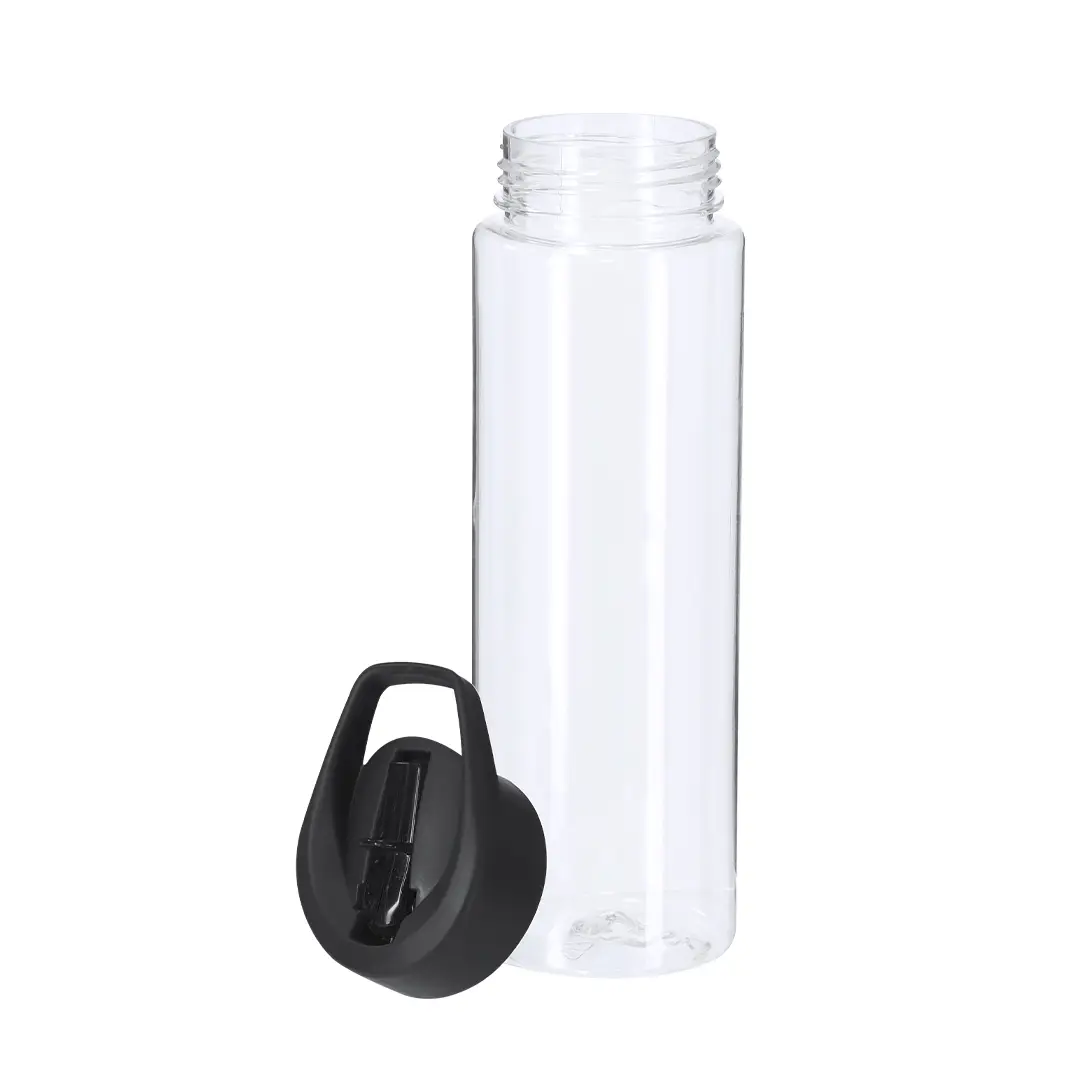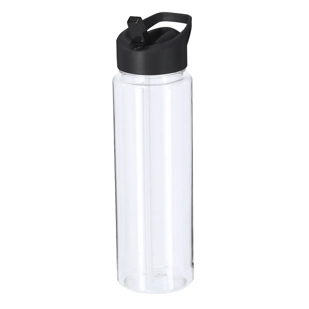 Bidón fabricado en RPET de 750 ml de capacidad con sistema de fácil apertura con dosificador de pajita y asa de transporte a juego. Libre de BPA.El material RPET se elabora a partir de plástico reciclado, para así fomentar la reutilización de residuos plásticos y ayudar a la sostenibilidad del planeta.