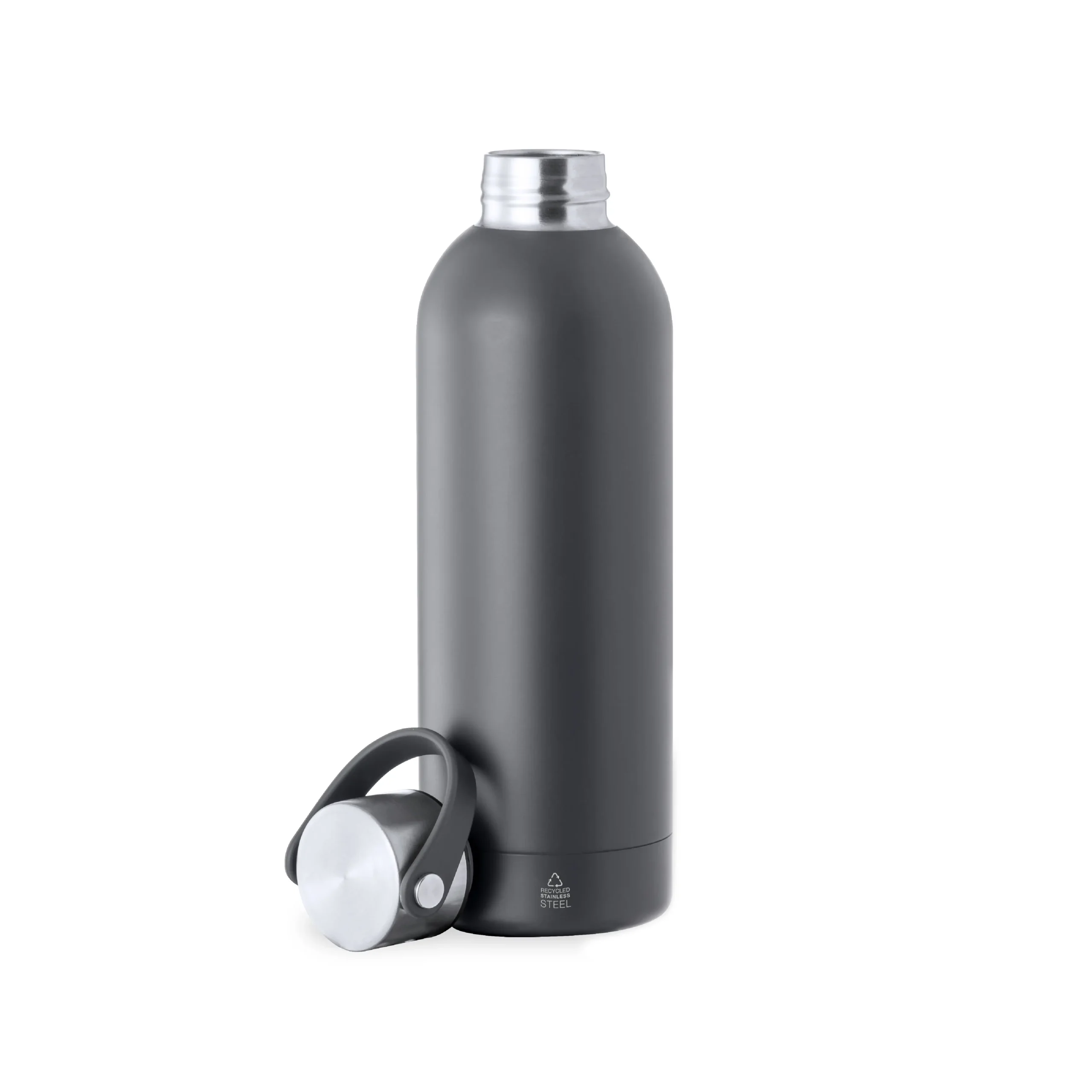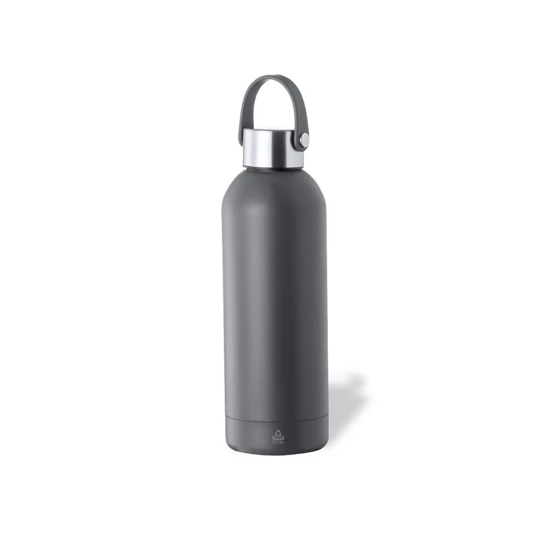 Bidón térmico de 500 ml de capacidad, fabricado en acero inox reciclado de doble pared, con tapón a rosca en mate y asa integrada a juego. Disponible en variada gama de colores satinados, libre de BPA y presentado en caja individual de diseño kraft. El acero es uno de los materiales más demandados y que puede encontrarse casi en todas partes, desde productos de uso diario a grandes construcciones. Con innumerables propiedades, entre las que cabe destacar la durabilidad y su alto grado de reutilización, convirtiéndolo en una alternativa muy valorada en soluciones de sostenibilidad. Debidamente tratado, permite obtener nuevos recursos de infinita utilización.