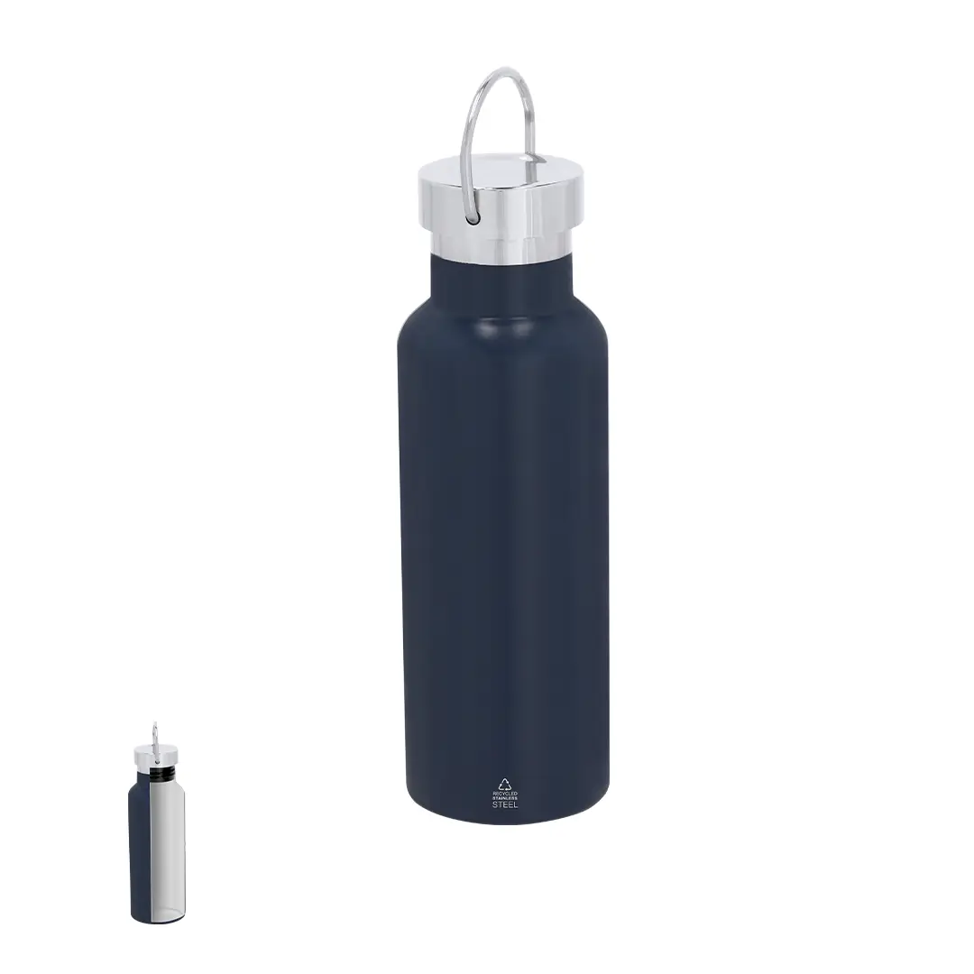 Bidón termo en Acero Inox Reciclado de 500 ml de capacidad. Con doble pared para mejor y más duradera conservación de la temperatura e interior con recubrimiento de cerámica, apto para bebidas carbonatadas. Tapón a rosca con sólida asa de trasporte en acero pulido. Con distintivo de Acero Inox Reciclado.El acero es uno de los materiales más demandados y que puede encontrarse casi en todas partes, desde productos de uso diario a grandes construcciones. Con innumerables propiedades, entre las que cabe destacar la durabilidad y su alto grado de reutilización, convirtiéndolo en una alternativa muy valorada en soluciones de sostenibilidad. Debidamente tratado, permite obtener nuevos recursos de infinita utilización.