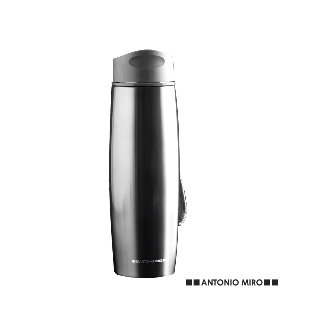 Bidón termo de Antonio Miró. En acero inox, de 500ml de capacidad con cuerpo metalizado en combinación con accesorios en sobrios colores. Con tapa dosificador de seguridad y presentada en caja individual con logotipo de la marca. Disponible manual de instrucciones en español e inglés.
