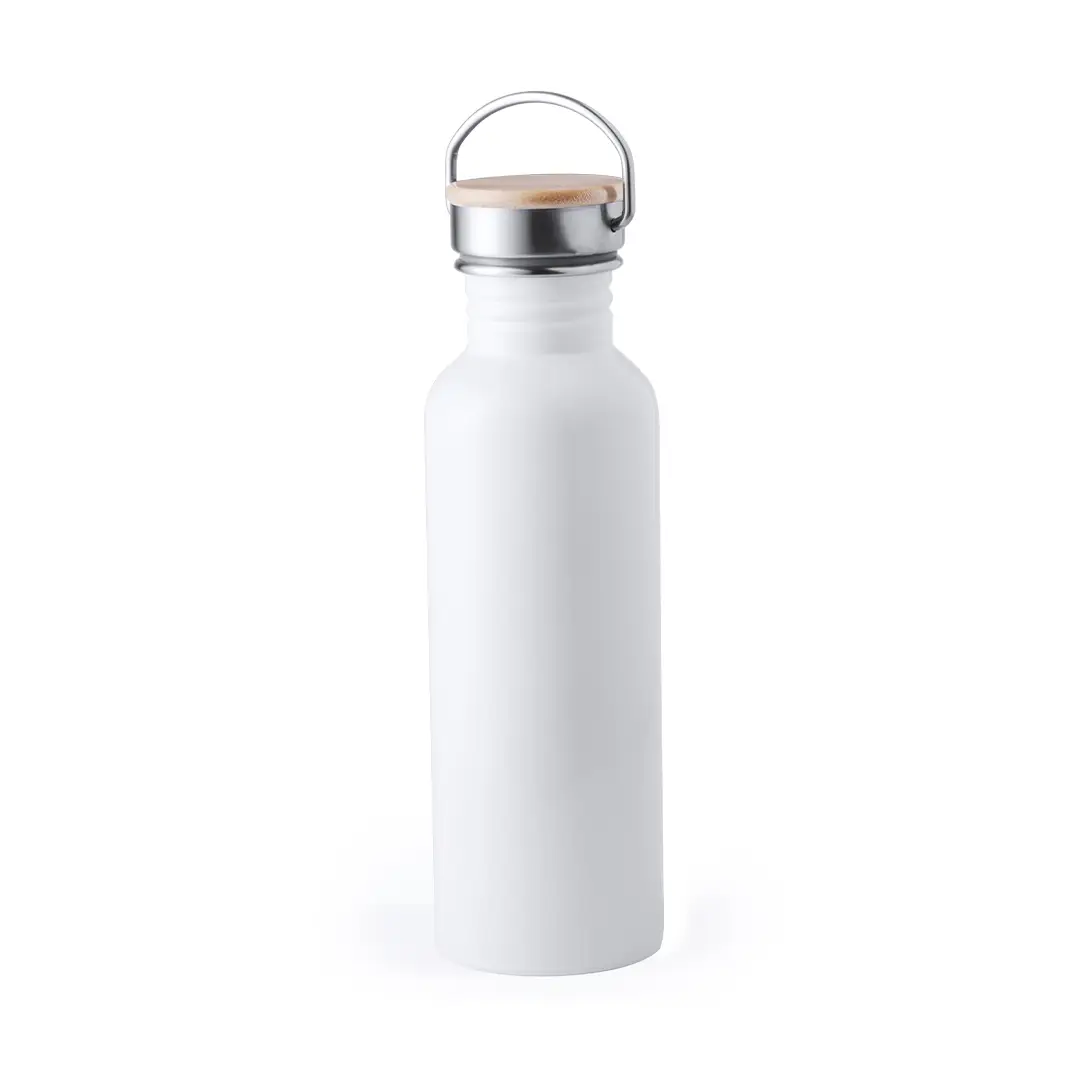 Bidón de estilo retro y 800ml de capacidad. Cuerpo en acero inox y en variada gama de colores brillantes. Tapón de seguridad a rosca en acero inox, con detalle en madera y asa de transporte vintage. Presentado en una atractiva caja de diseño.