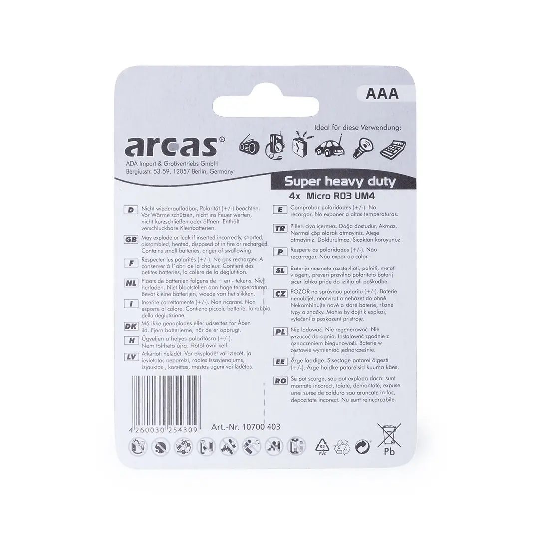 Blister de 4 pilas salinas de 1,5V tipo AAA/R03