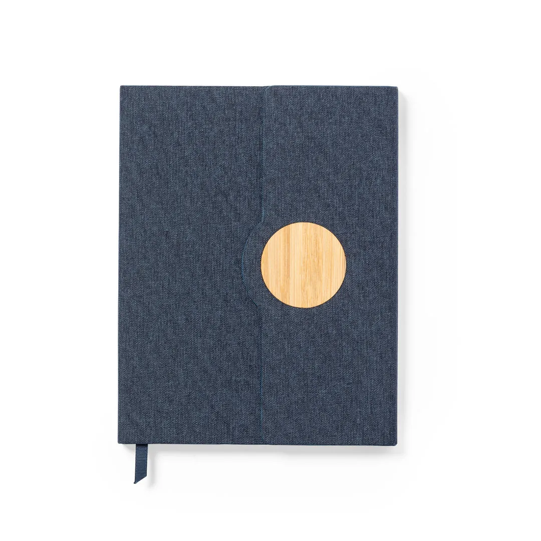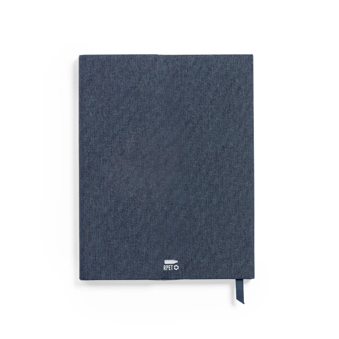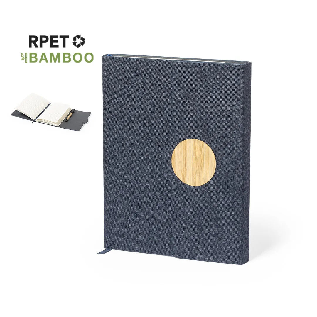 Bloc de notas desplegable de línea nature fabricado en poliéster 300D RPET. Con tapas duras y detalle en bambú en la portada. Interior desplegable con 80 hojas de disposición a una raya, marcapáginas de tela a juego y soporte para bolígrafo (bolígrafo no incluido). Disponible en variada gama de colores, con distintivo RPET en la contraportada. El material RPET se elabora a partir de plástico reciclado, para así fomentar la reutilización de residuos plásticos y ayudar a la sostenibilidad del planeta.