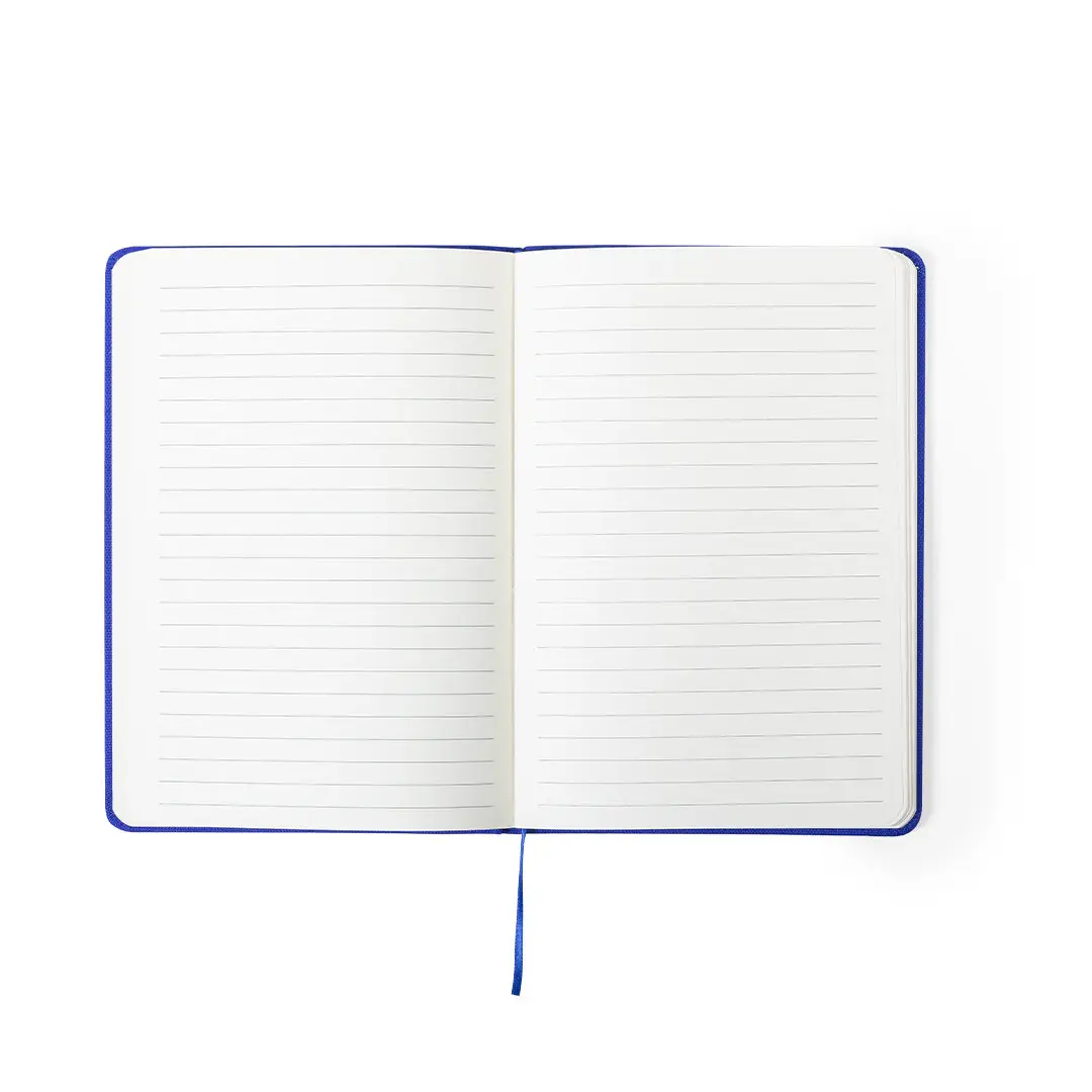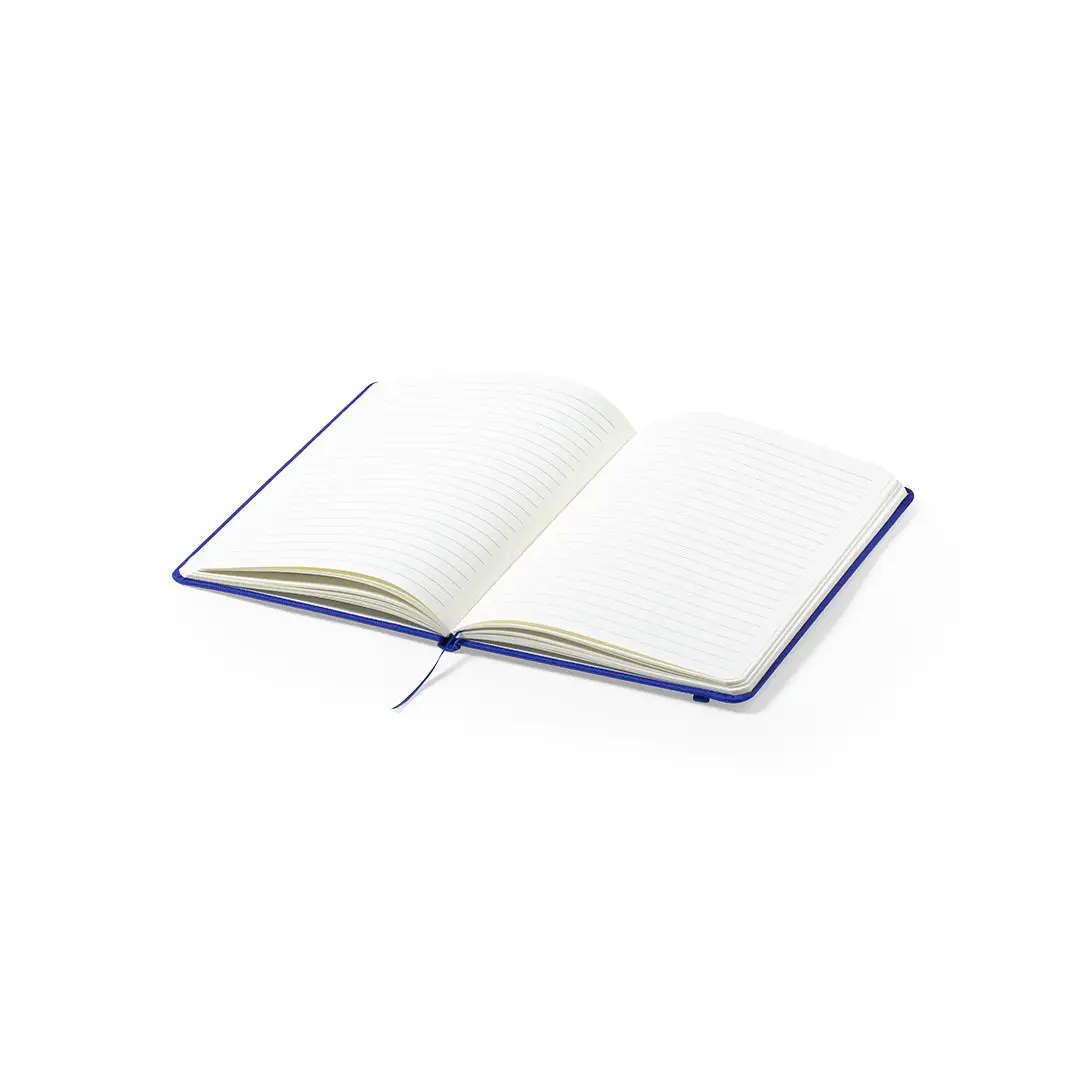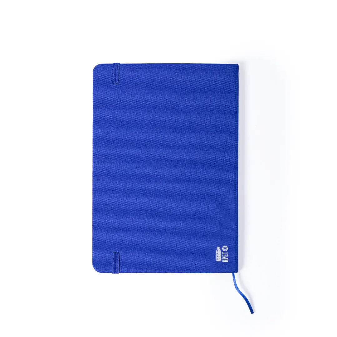 Bloc de notas de línea nature con tapas rígidas en 600D RPET, elaborado a partir de plástico reciclado para así fomentar la reutilización de residuos plásticos y contribuir a la sostenibilidad del planeta. Disponible en amplia gama de colores, incluye 80 hojas con disposición a una raya. Con elástico de sujeción y marcapáginas de tela a juego. Distintivo RPET en parte trasera.