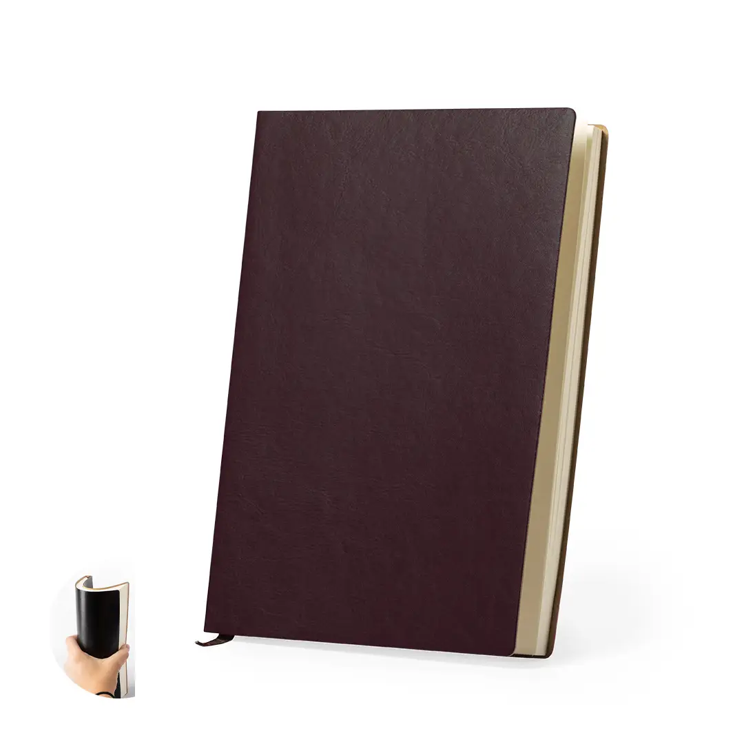 Bloc de notas con suaves tapas en polipiel de acabado flexible. 100 hojas con disposición a una raya y marcapáginas de tela a juego. Disponible en sobrios colores