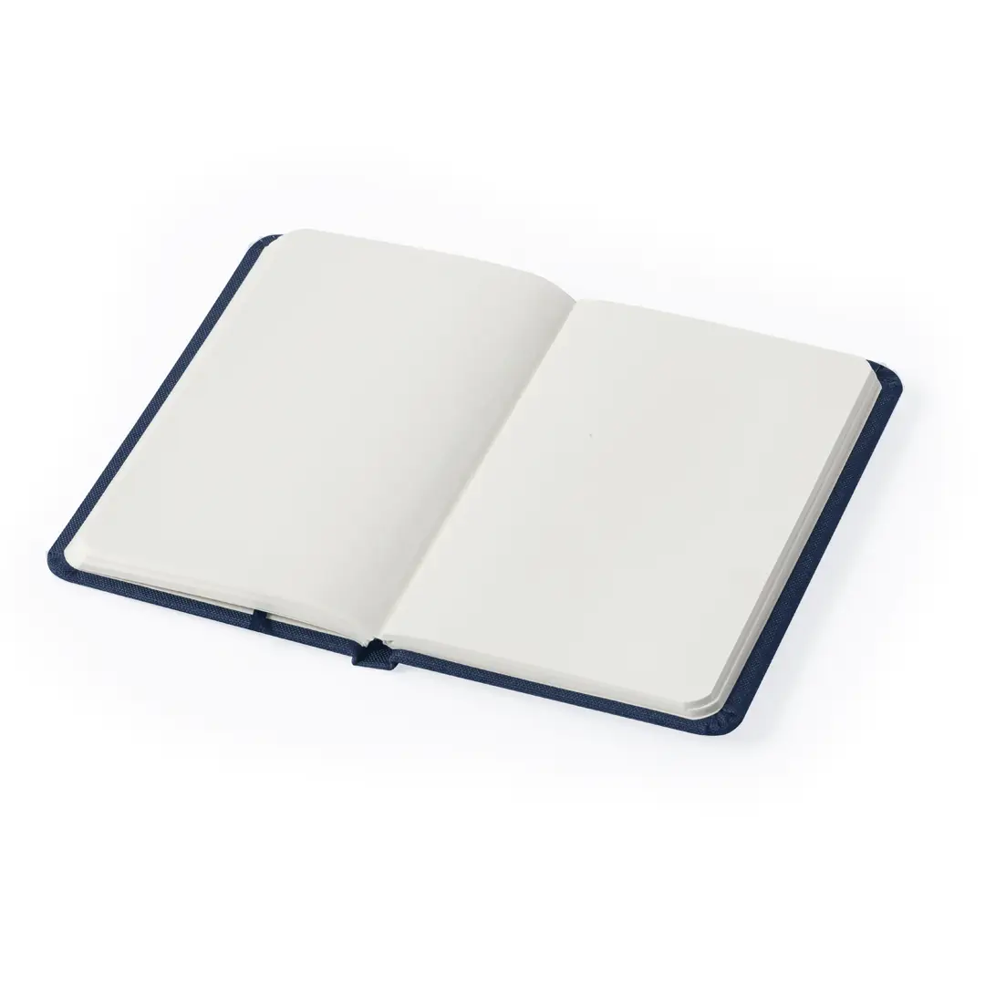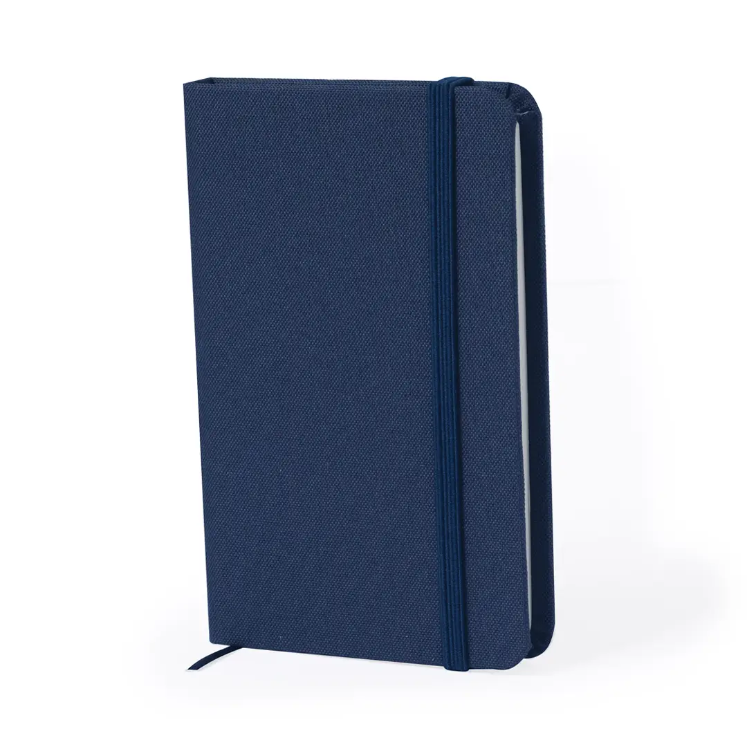 Bloc de notas con tapas rígidas en RPET 300D. Incluye 100 hojas con disposición a una raya, elástico de sujeción y marcapáginas de tela a juego. Disponible en amplia gama de colores. Logotipo RPET en parte trasera. Presentado individualmente en bolsa reciclada.El material RPET se elabora a partir de plástico reciclado, para así fomentar la reutilización de residuos plásticos y ayudar a la sostenibilidad del planeta.