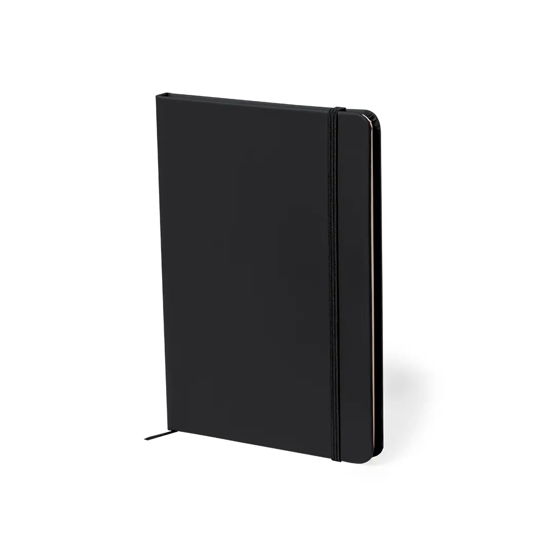 Bloc de notas con tapas rígidas fabricadas en polipiel reciclada en distintos colores. Interior con 100 hojas de disposición a una raya. Incluye elástico de cierre del mismo color. Con distintivo Polipiel Reciclada. Presentado en bolsa individual reciclada.La polipiel destaca por su resistencia y elasticidad. Este material reciclado y reciclable es una opción sostenible que rescata las fibras desechadas en los procesos de fabricación, minimizando así el desperdicio de material y contribuyendo a su vez a reducir el impacto ambiental, manteniendo a la vez sus propiedades originales.