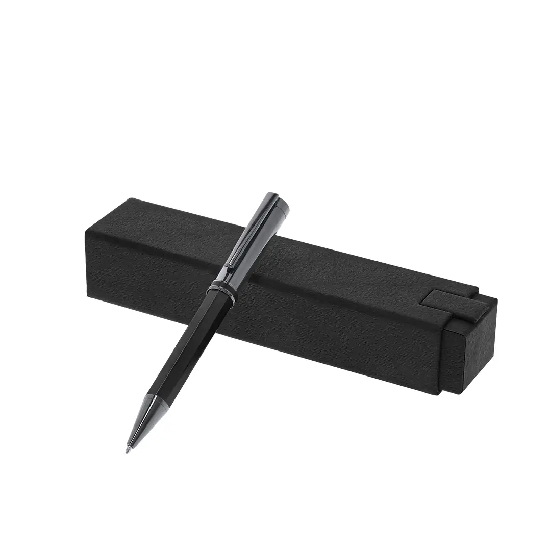 Exclusivo set de bolígrafo la más alta gama. Un complemento moderno, funcional de gran belleza que sobrepasa todas las expectativas. Caracterizado por su elegante y minimalista diseño, así como su calidad premium en resistente y duradero acero inox, en perfecta sintonía con el aluminio. Bolígrafo con sofisticado sistema de apertura giratoria . Empuñaduras de diseño hexagonal en colores metalizados mate y parte superior cilíndrica de sofisticado color antracita brillo con clip metálico, de tinta azul y recargables.