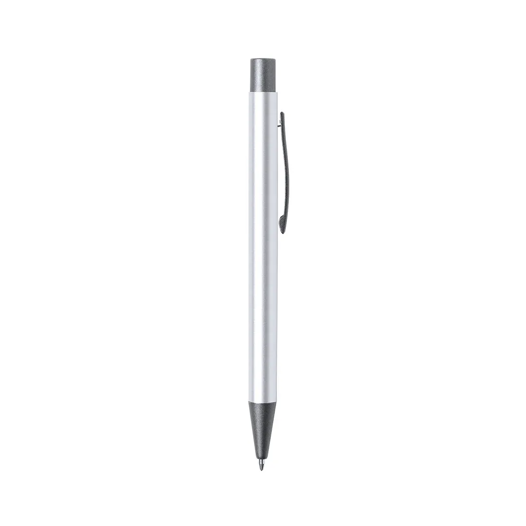 Bolígrafo eco-friendly fabricado en aluminio reciclado, cuyo origen se encuentra en la reutilización casi infinita de uno de los materiales con mayor potencial de reciclabilidad sin perder sus propiedades. Esta característica lo convierte en un material eco-friendly de origen reciclado, fácilmente reciclable y de cuyos procesos de tratamiento y desechos para la obtención del material se pueden obtener nuevos recursos reutilizables, consumiendo menos energía en su fabricación, entre otros factores de sostenibilidad. De mecanismo pulsador, con cuerpo disponible en variada gama de colores metalizados y accesorios en acabado gun. Clip metálico, tinta azul y distintivo aluminio reciclado en la parte superior del bolígrafo. Certificación GRS (Global Recycled Standard / Estándar de Reciclaje Global), que garantiza el origen reciclado del material usado para fabricar el producto.
