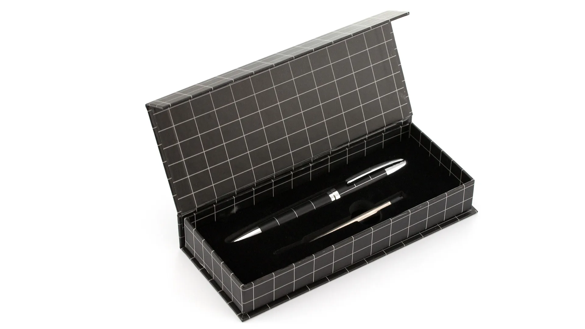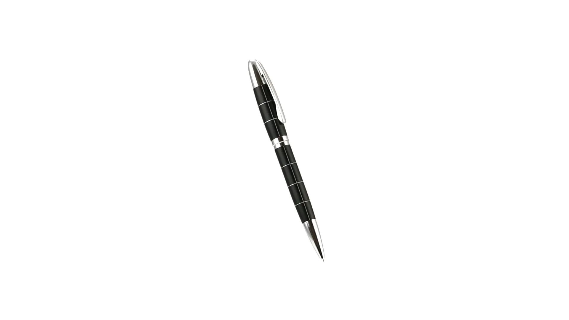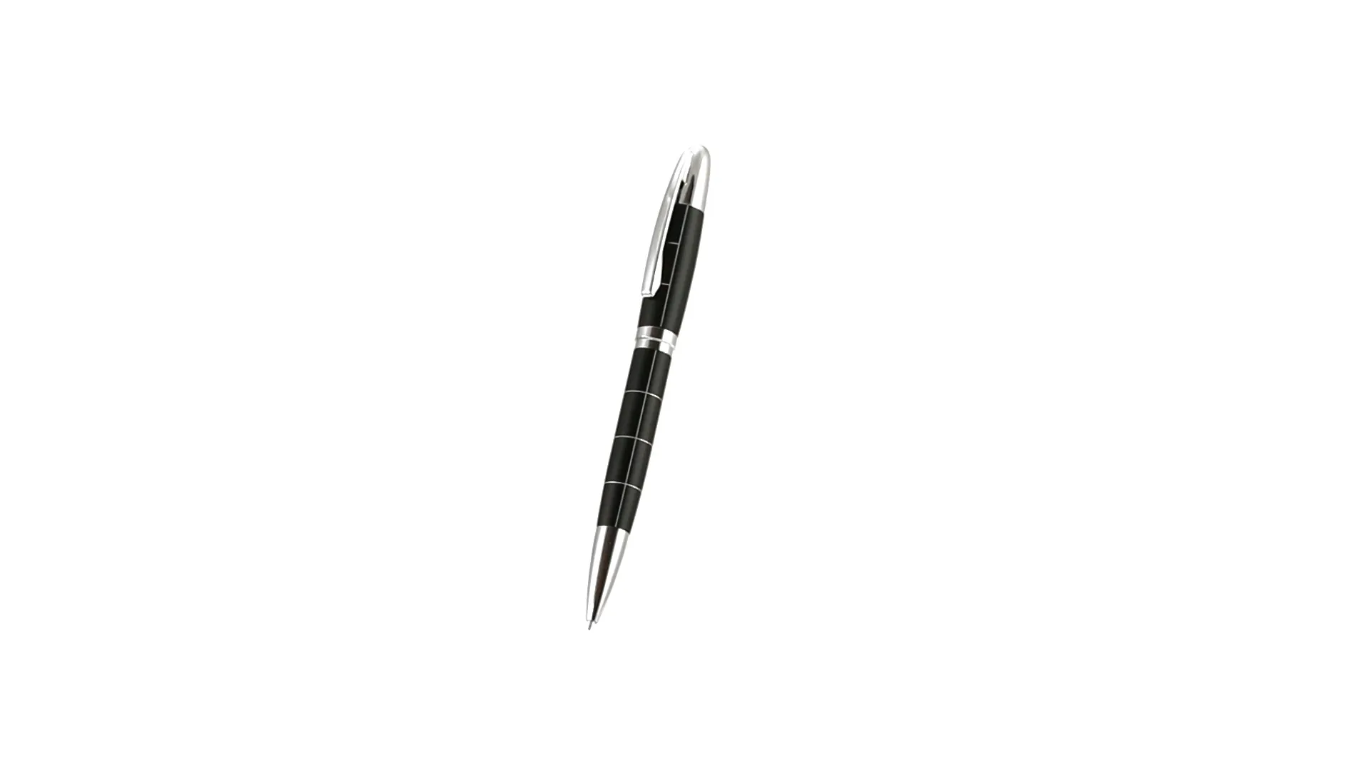 Elegante bolígrafo de mecanismo giratorio en sobrio diseño bicolor. De cuerpo metálico en suave acabado con accesorios en colores plateados. Presentado en elegante estuche individual en color negro con cierre de imán. De cartucho jumbo, con recambio incluido y en tinta azul.