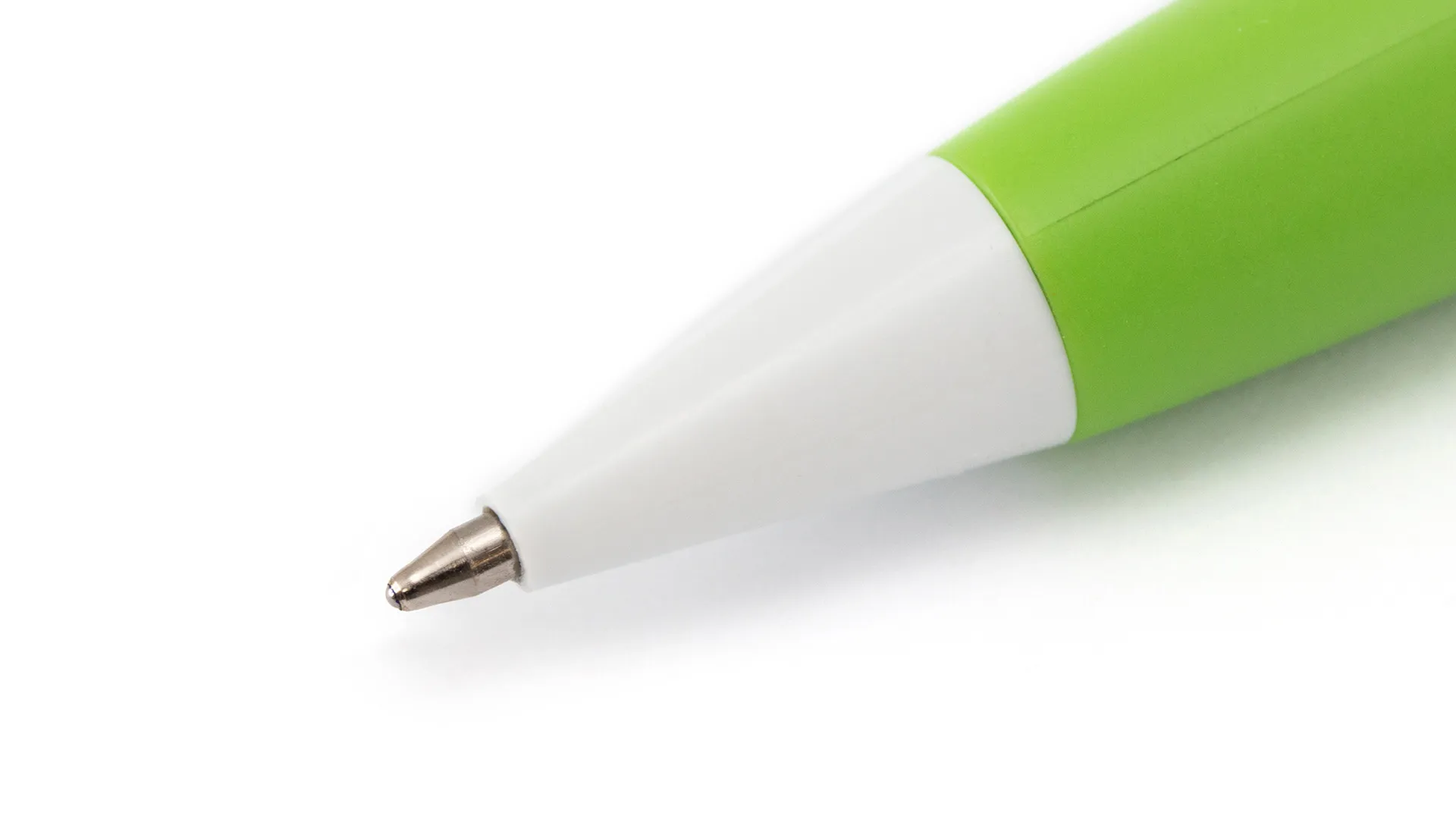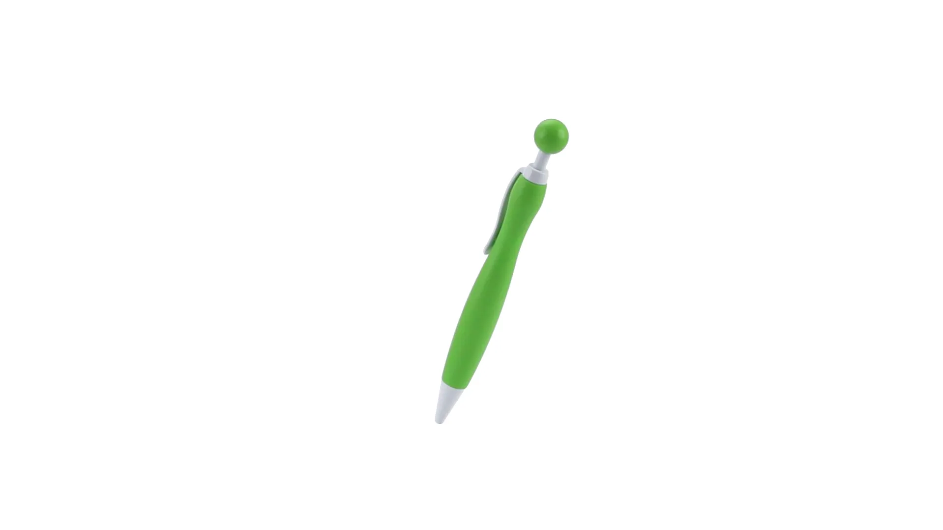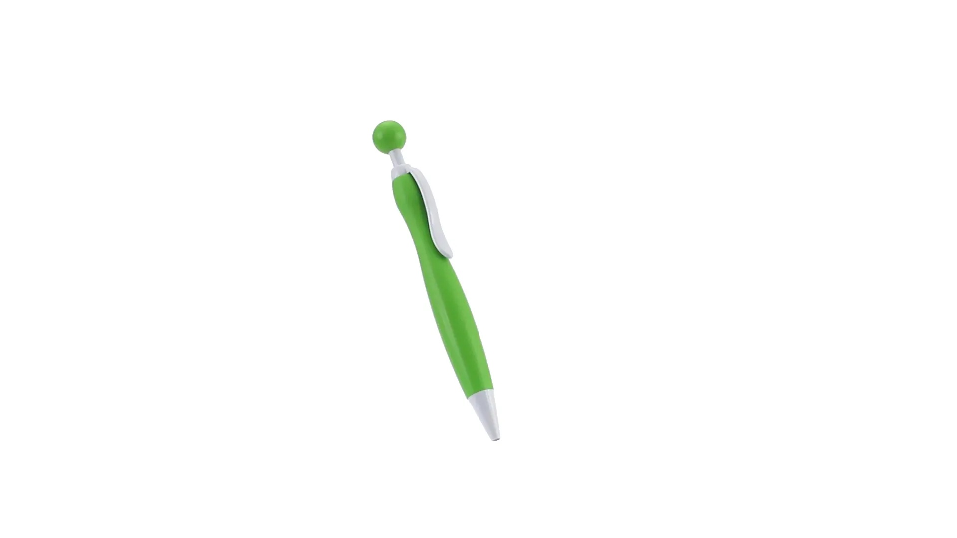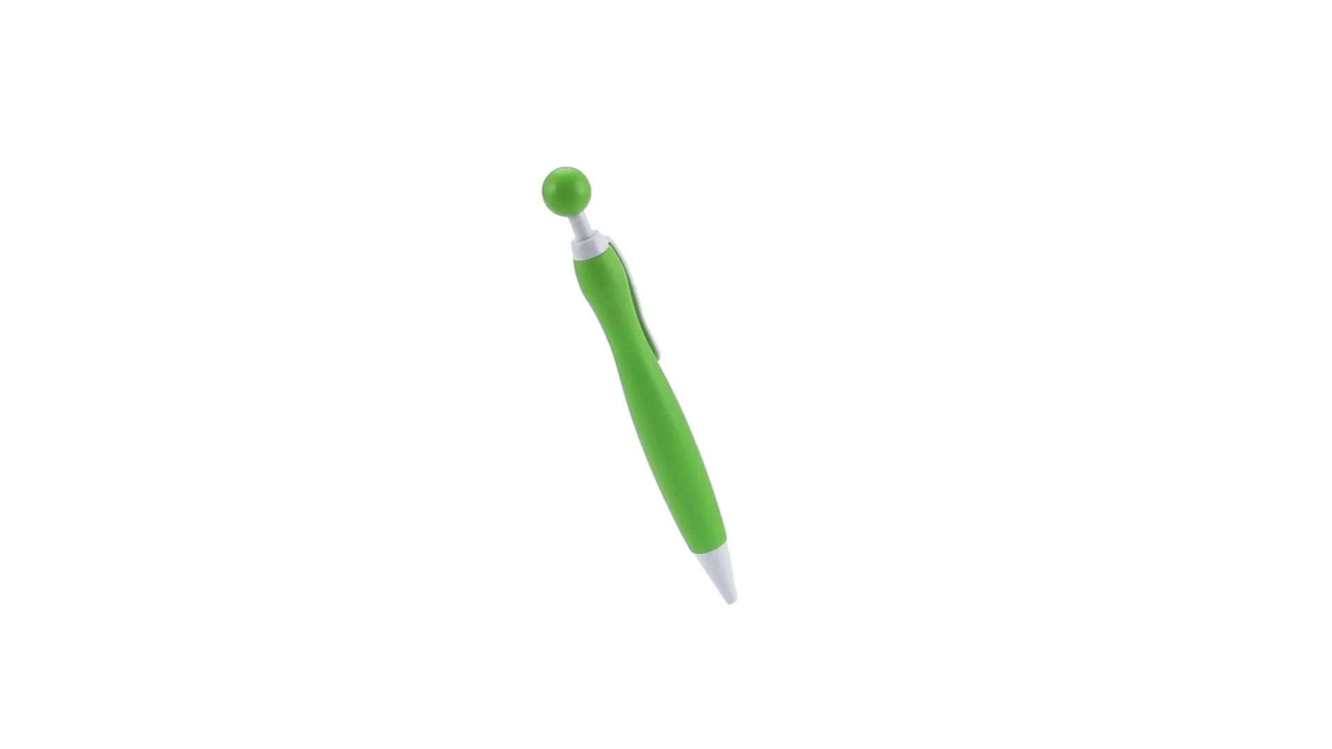 Bolígrafo de mecanismo pulsador de atrevido diseño bicolor con accesorios en color blanco sólido y cuerpo curvado de suave acabado en llamativos colores sólidos. Con original clip pulsador en forma de bola a juego. De cartucho jumbo y tinta azul.