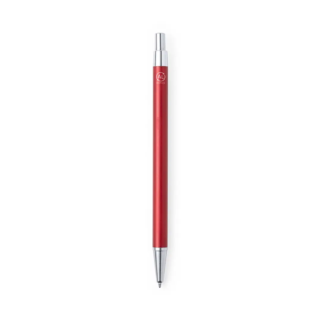 Bolígrafo eco-friendly fabricado en aluminio reciclado, cuyo origen se encuentra en la reutilización casi infinita de uno de los materiales con mayor potencial de reciclabilidad sin perder sus propiedades. Esta característica lo convierte en un material eco-friendly de origen reciclado, fácilmente reciclable y de cuyos procesos de tratamiento y desechos para la obtención del material se pueden obtener nuevos recursos reutilizables, consumiendo menos energía en su fabricación, entre otros factores de sostenibilidad. De mecanismo pulsador, con cuerpo disponible en variada gama de colores metalizados y accesorios en cromado. Con clip metálico, tinta azul y distintivo aluminio reciclado en la parte superior del bolígrafo. Certificación GRS (Global Recycled Standard / Estándar de Reciclaje Global), que garantiza el origen reciclado del material usado para fabricar el producto.