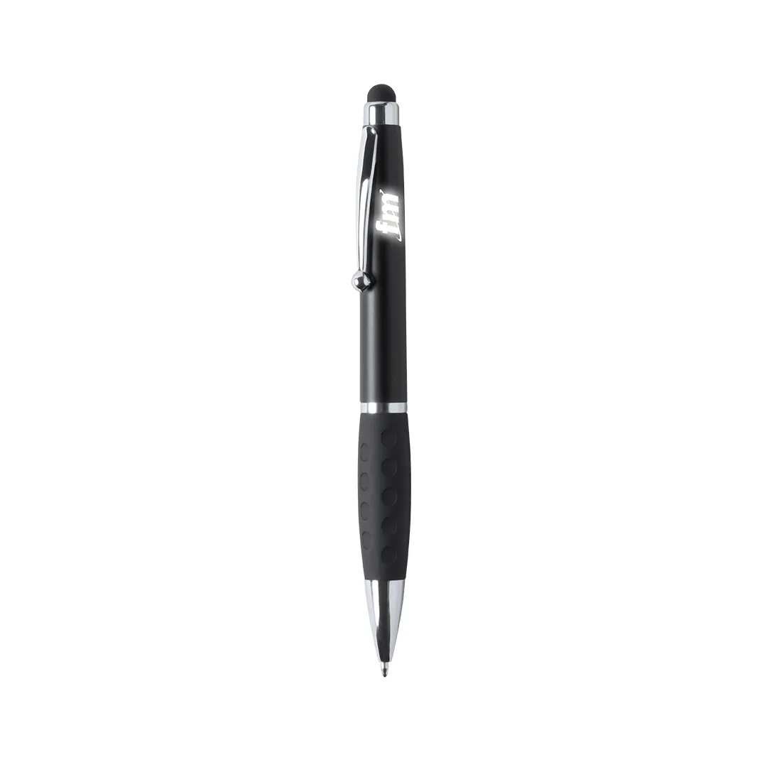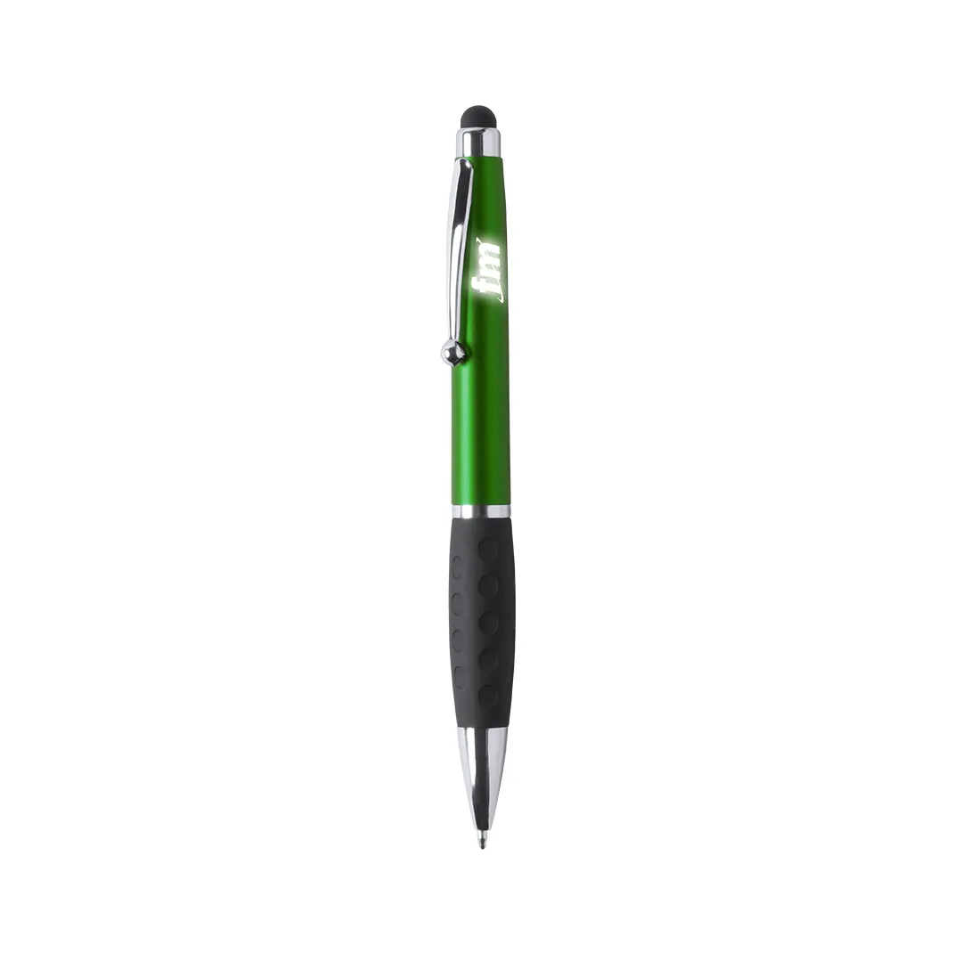 Bolígrafo puntero de mecanismo giratorio con luz led interior y cuerpo especialmente diseñado para marcaje en láser, iluminando así el logotipo. Con suave empuñadura y cuerpo en variada gama de vivos colores. Tinta azul y pilas de botón incluidas.