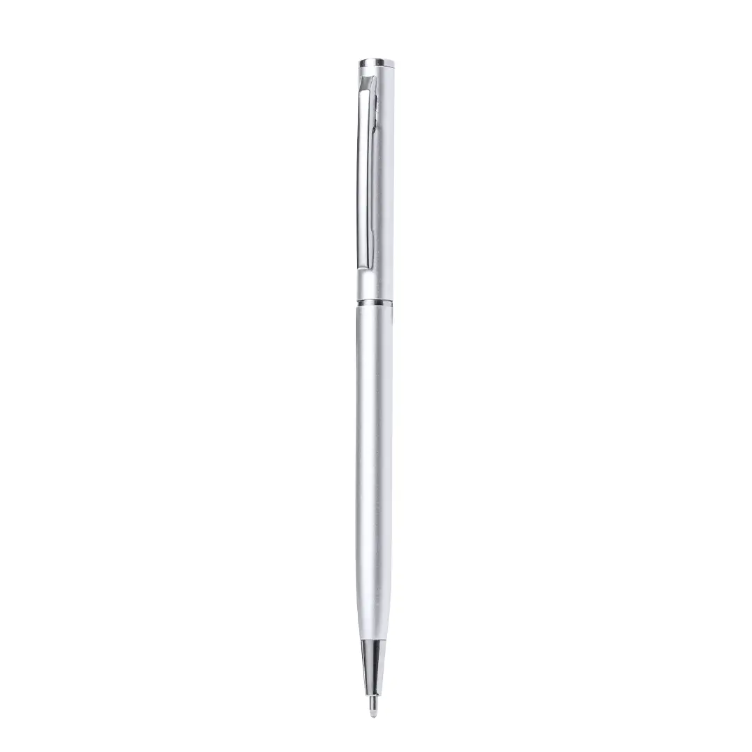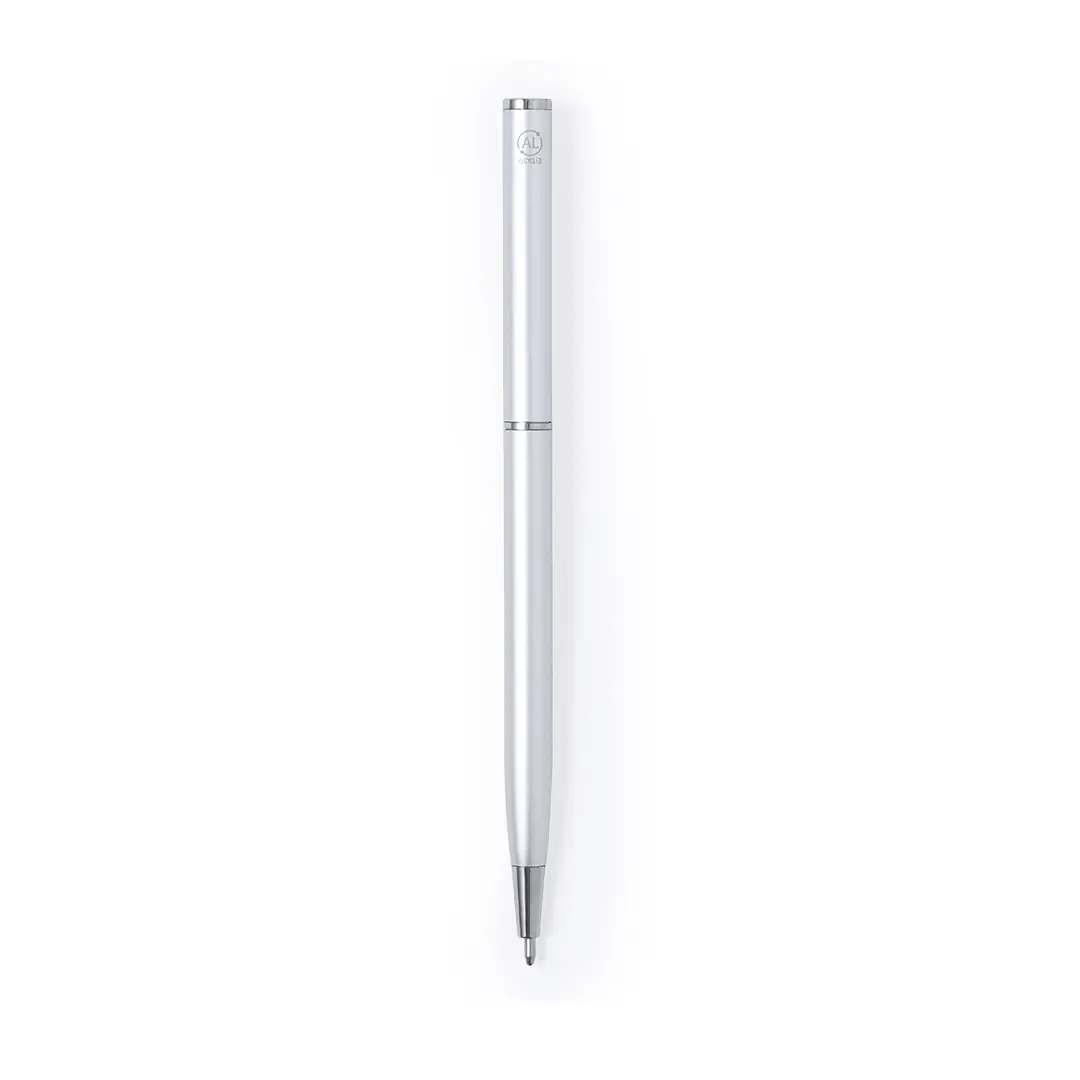 Bolígrafo con cuerpo de Aluminio Reciclado. Clip metálico y accesorios cromados. De mecanismo giratorio y de tinta azul. Con logotipo Aluminio Reciclado.El Aluminio Reciclado es un material con posibilidades de reciclaje casi infinitas, sin perder sus propiedades originales y consumiendo menos energía en este proceso.Certificación GRS (Global Recycled Standard / Estándar de Reciclaje Global), que garantiza el origen reciclado del material usado para fabricar el producto.