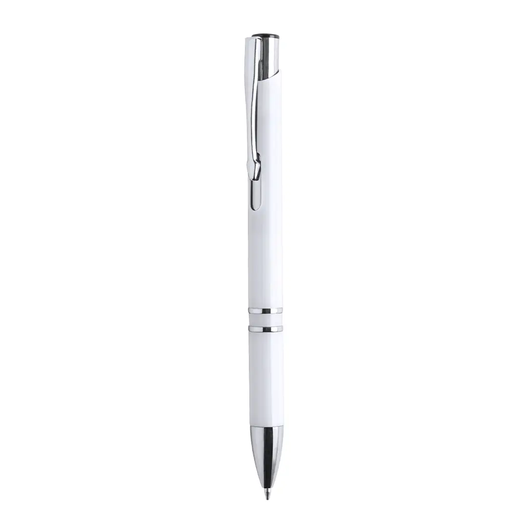 Bolígrafo con cuerpo en brillantes colores. Detalles en cromado y original muesca en cuerpo. De mecanismo pulsador, con cartucho jumbo y tinta azul.