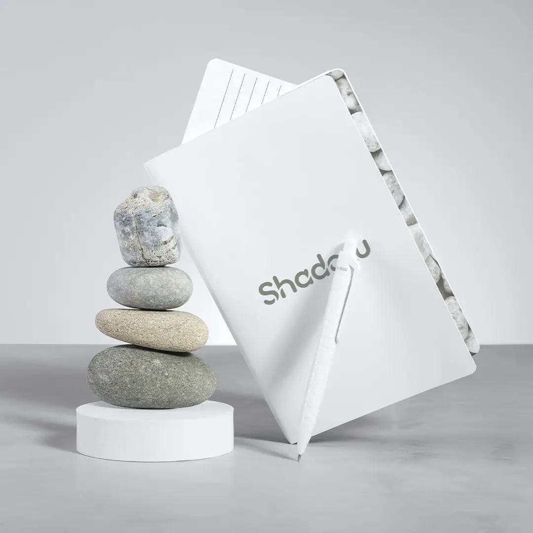 Bolígrafo de línea nature y mecanismo pulsador. Cuerpo troquelado fabricado con extractos de piedra natural, ayudando a la reducción del uso de plásticos, además de proporcionar un acabado suave y resistente. En color blanco y con distintivo natural stone en la parte superior, de cartucho jumbo y en tinta azul.