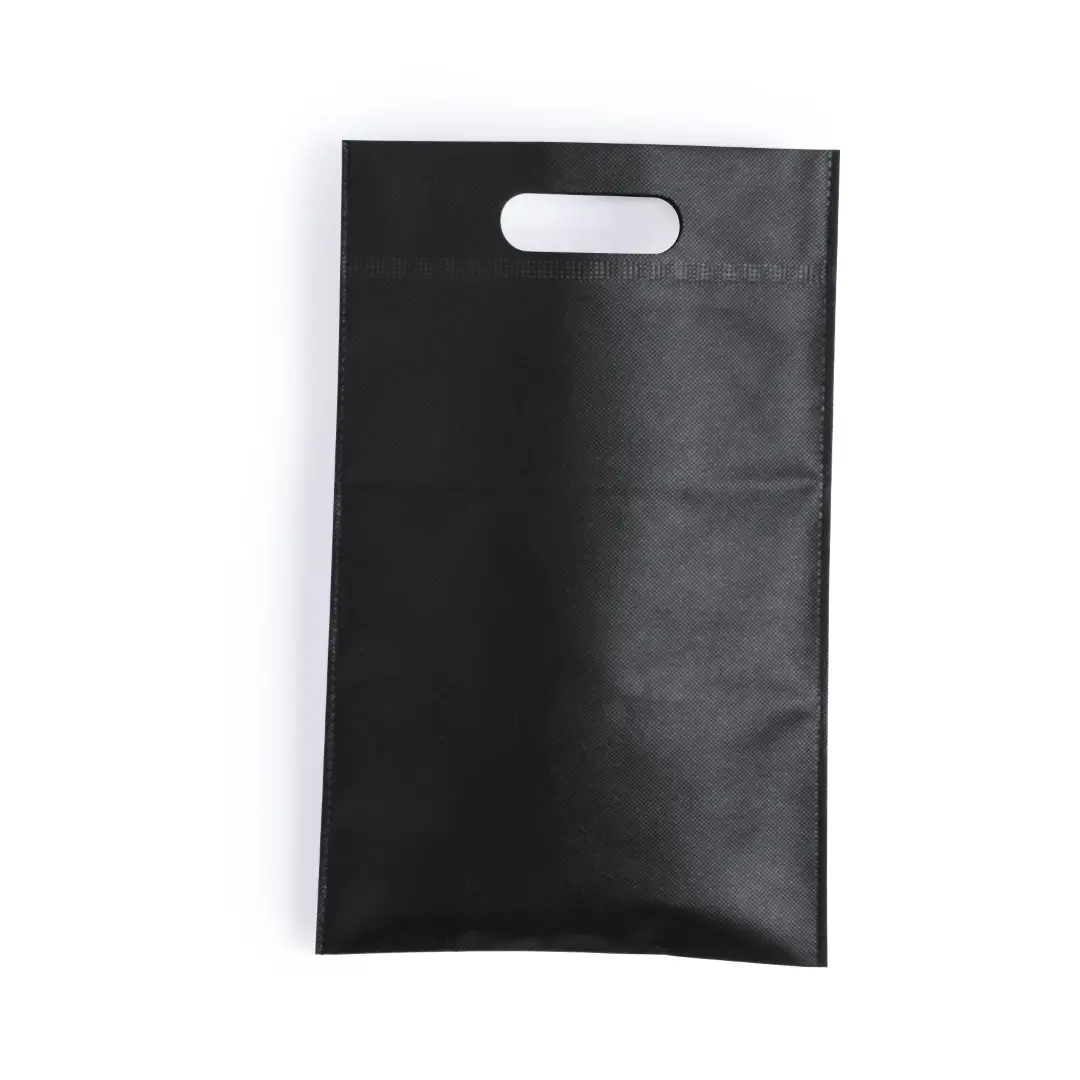 Bolsa de non-woven de 80g/m2 en color negro especialmente diseñada para calzado veraniego. Con asa reforzada troquelada.