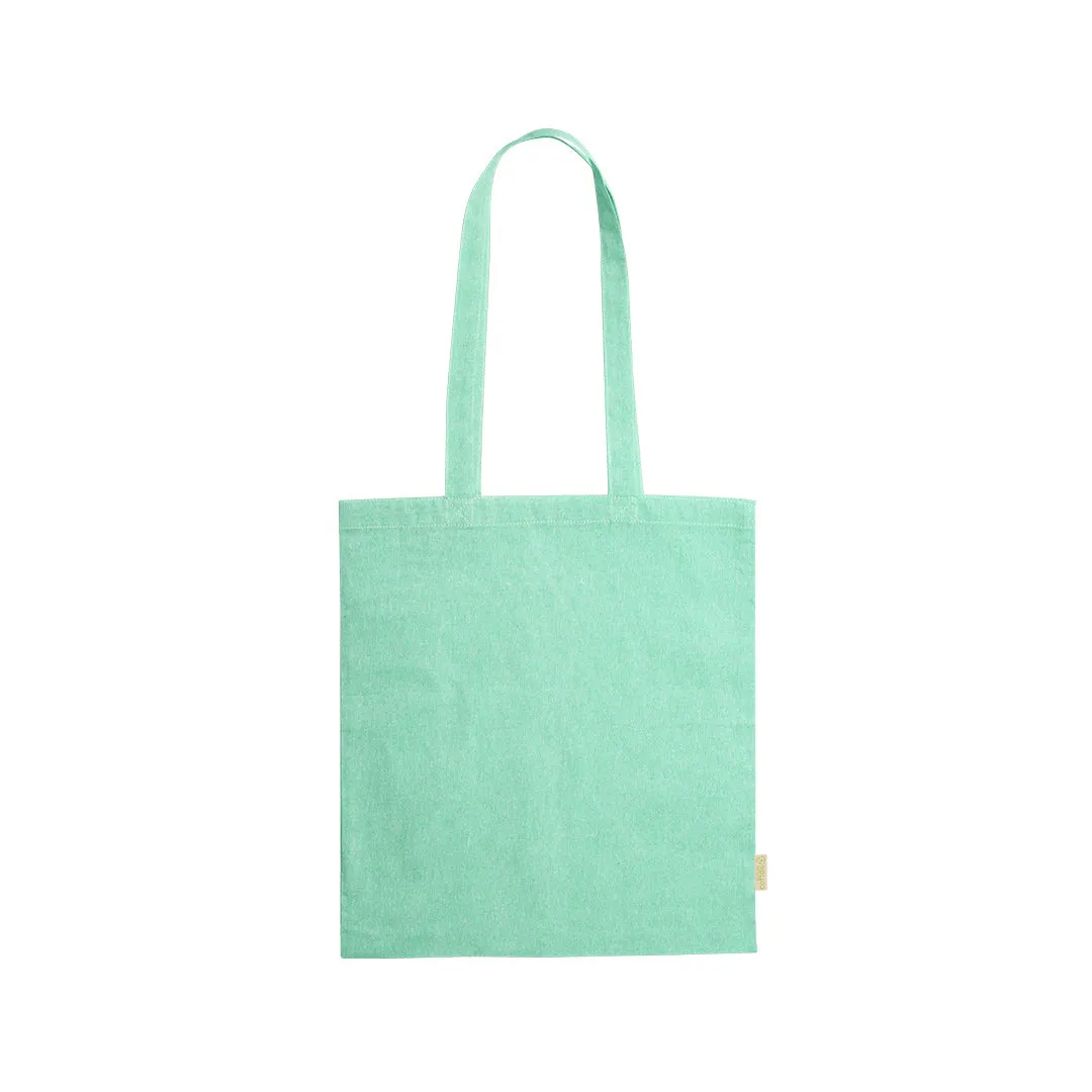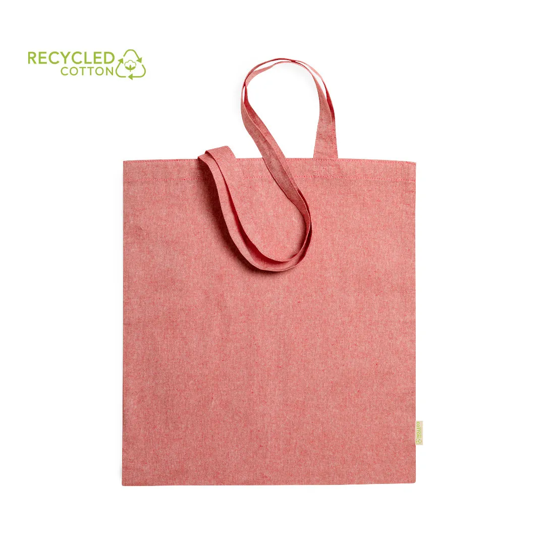 Bolsa de línea nature en material 100% algodón reciclado de 120 g/m2. Asas largas de 70cm con refuerzo y de acabado cosido. Distintivo en etiqueta lateral y resistencia hasta 8 kg de peso. Disponible en variada gama de colores nature.