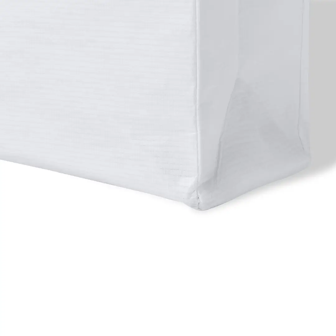 Bolsa de línea nature fabricada RPET laminado de 110g/m2. De acabado cosido, con fuelle y asas cortas reforzadas (35 x 2,5cm). Disponible en variada gama de colores, con distintivo RPET en etiqueta exterior. Resistencia hasta 5 kg de peso.El material RPET se elabora a partir de plástico reciclado, para así fomentar la reutilización de residuos plásticos y ayudar a la sostenibilidad del planeta.