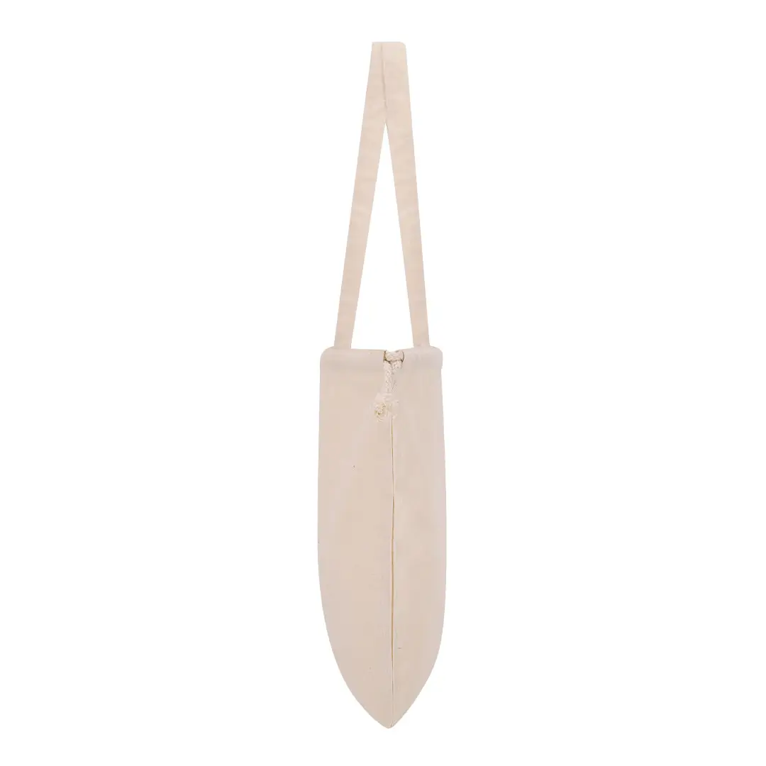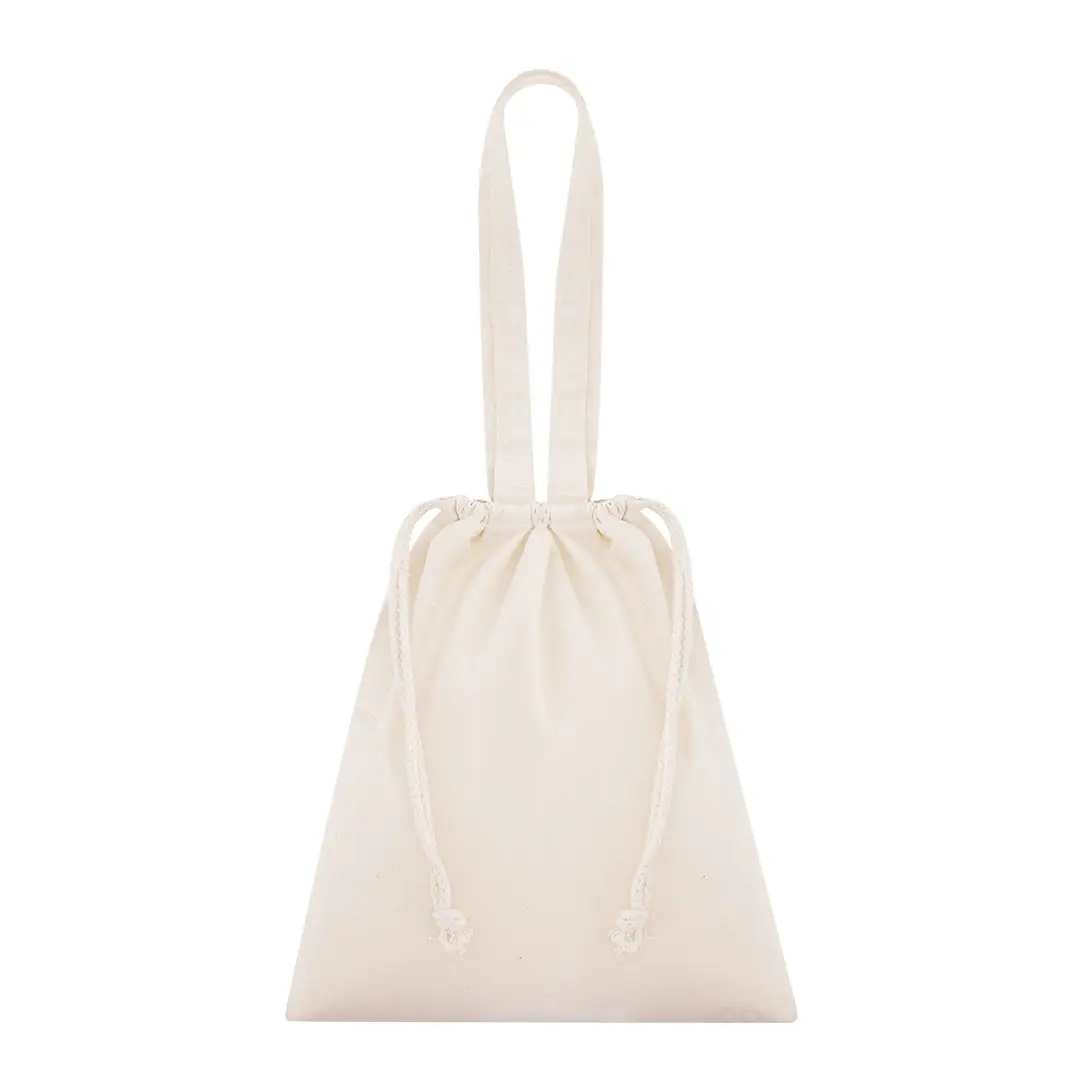 Bolsa con cuerdas ajustables fabricada en algodón 180g/m2 Con asas largas de 70 x 2.5 cm reforzadas. Resistencia máxima de 7 kg.