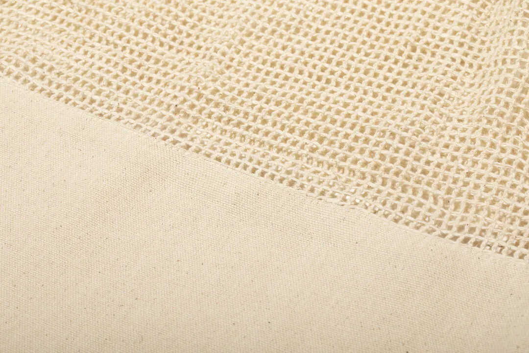 Bolsa de redecilla de línea nature en algodón crudo de 220g/m2, con superficie lisa para impresión. Asas largas de 60 cm reforzadas.