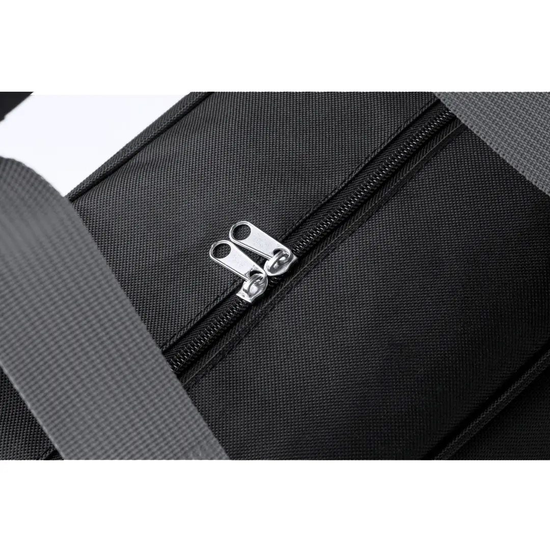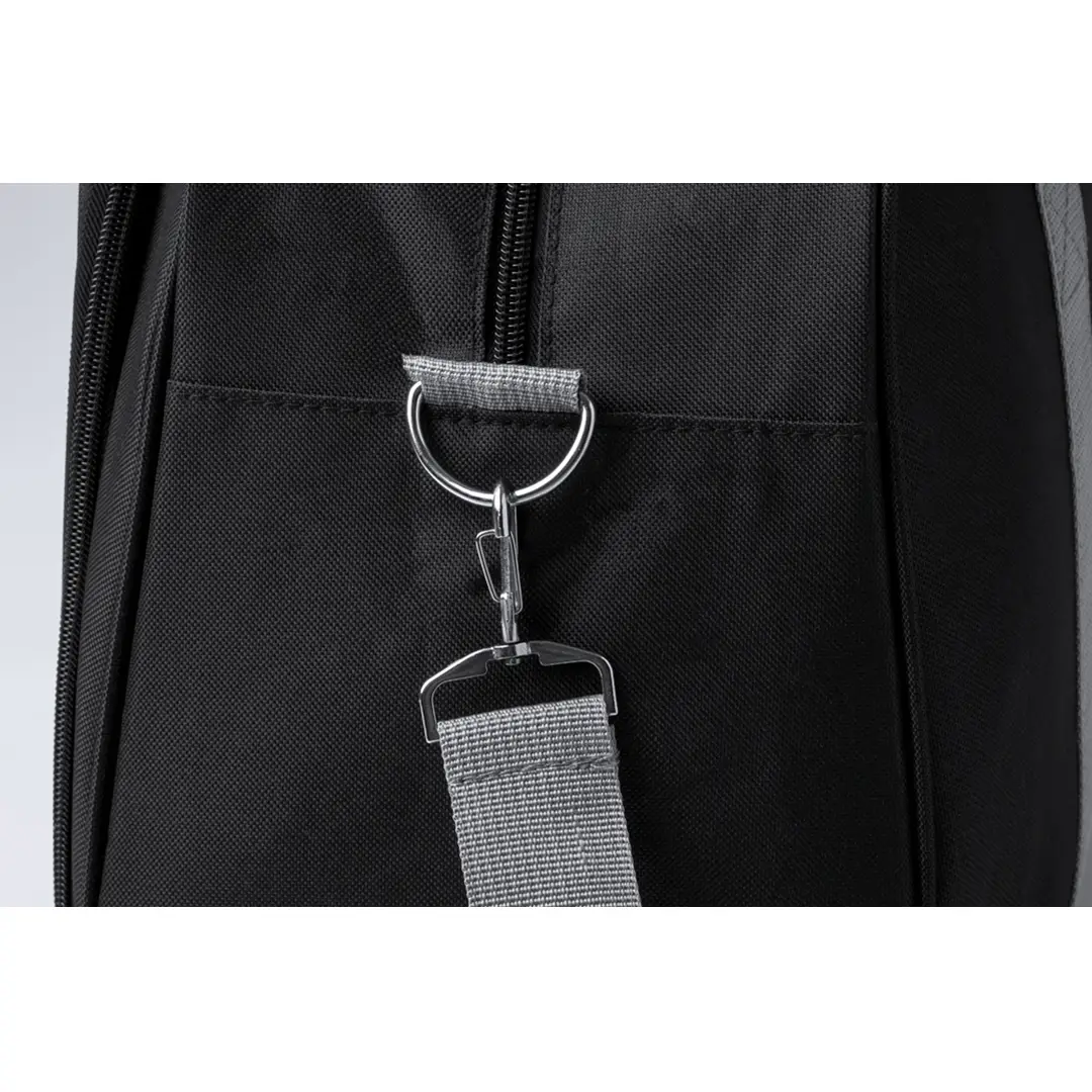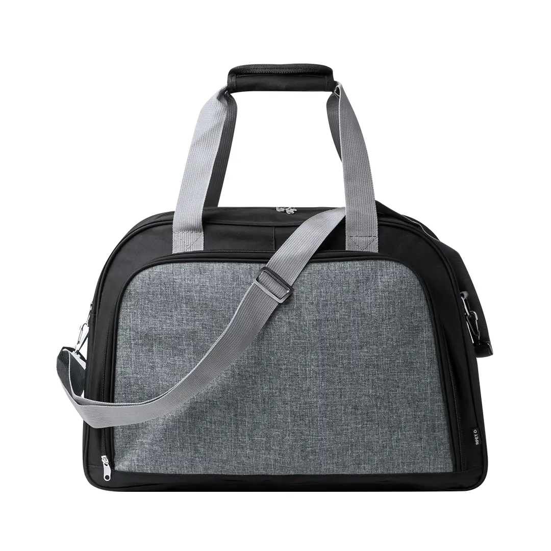 Bolso de gran capacidad fabricado en resistente RPET 600D. Cuenta con cierre de cremallera de doble asa de mano con cierre de velcro, y un bolsillo frontal con cierre de cremallera. Dispone de asa ajustable para un cómodo transporte con enganche y doble asa con cierre de velcro. Disponible en varios colores. Incluye etiqueta distintiva de RPET. Presentado en una bolsa individual reciclada.El material RPET se elabora a partir de plástico reciclado, para así fomentar la reutilización de residuos plásticos y ayudar a la sostenibilidad del planeta.