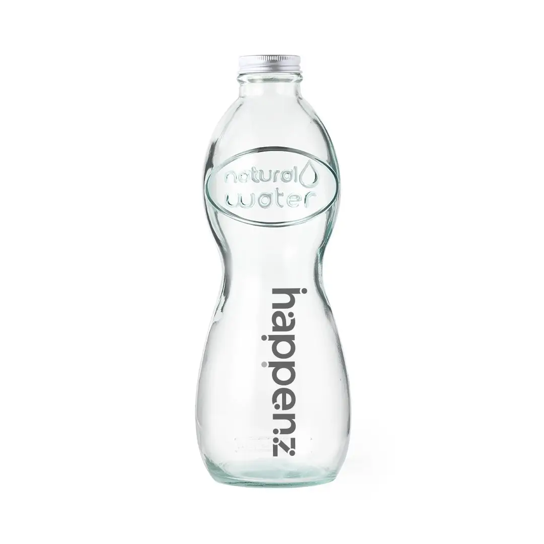 Botella de línea nature de 1l de capacidad, con tapón a rosca metálico. De fabricación europea y hecha en vidrio reciclado con acreditación GRS (Global Recycled Standard / Estándar de Reciclaje Global), que garantiza el origen reciclado del material usado para fabricar el producto. Presentado en estuche de cartón reciclado con ventana.