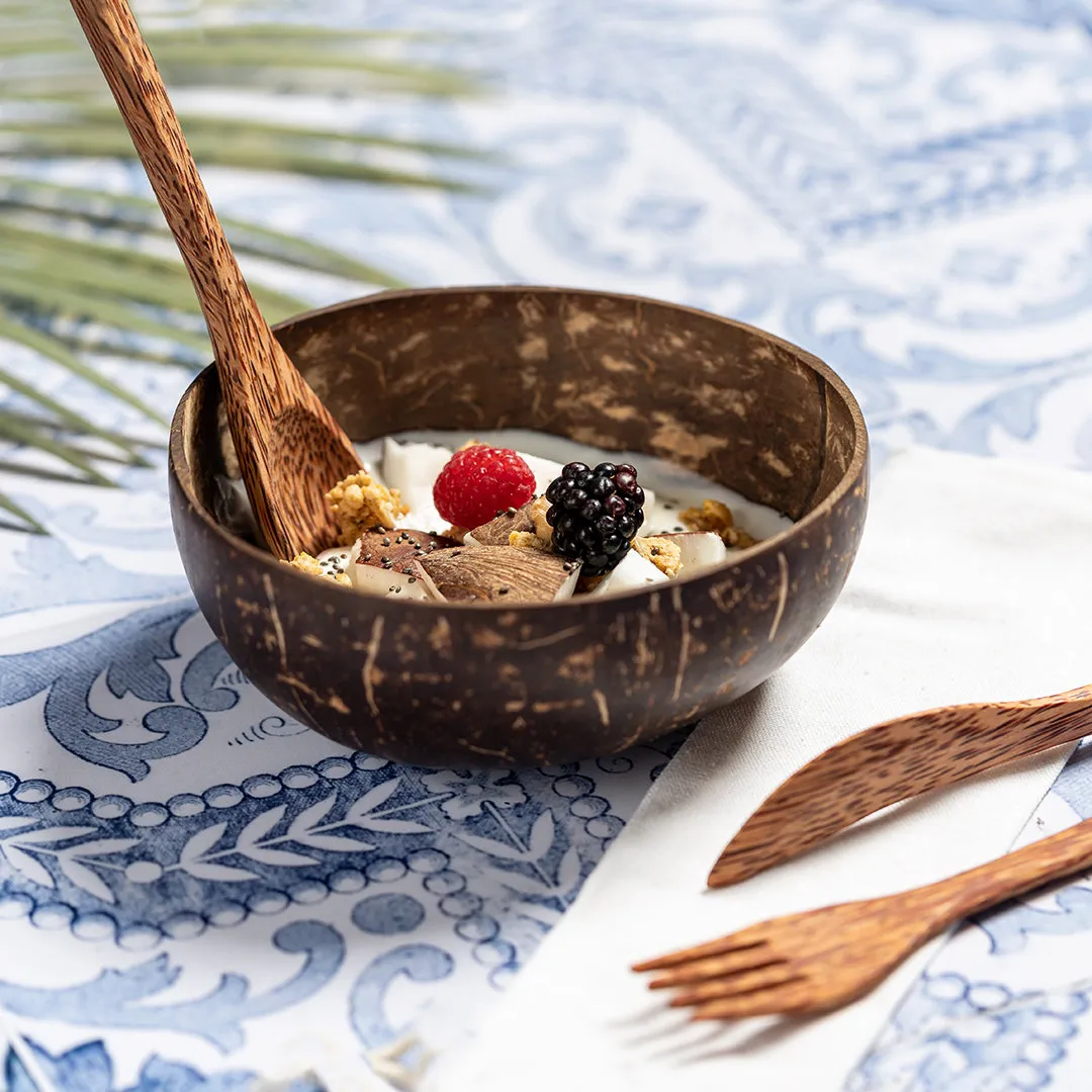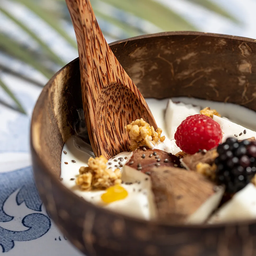 Bowl de línea nature fabricado en coco. Tras el consumo de su fruto, del coco y su planta se pueden obtener multitud de productos, contribuyendo a la sostenibilidad del planeta y fomentando el uso de materias primas naturales. Presentado en caja individual de diseño eco.