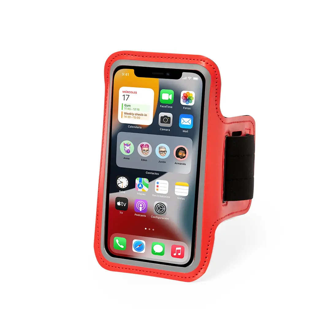 Brazalete deportivo táctil, diseñado para dispositivos con pantalla de hasta 6 pulgadas. Frontal reflectante, con tira de cierre elástica y ajustable, y bolsillo para llaves. Disponible en variada gama de colores.